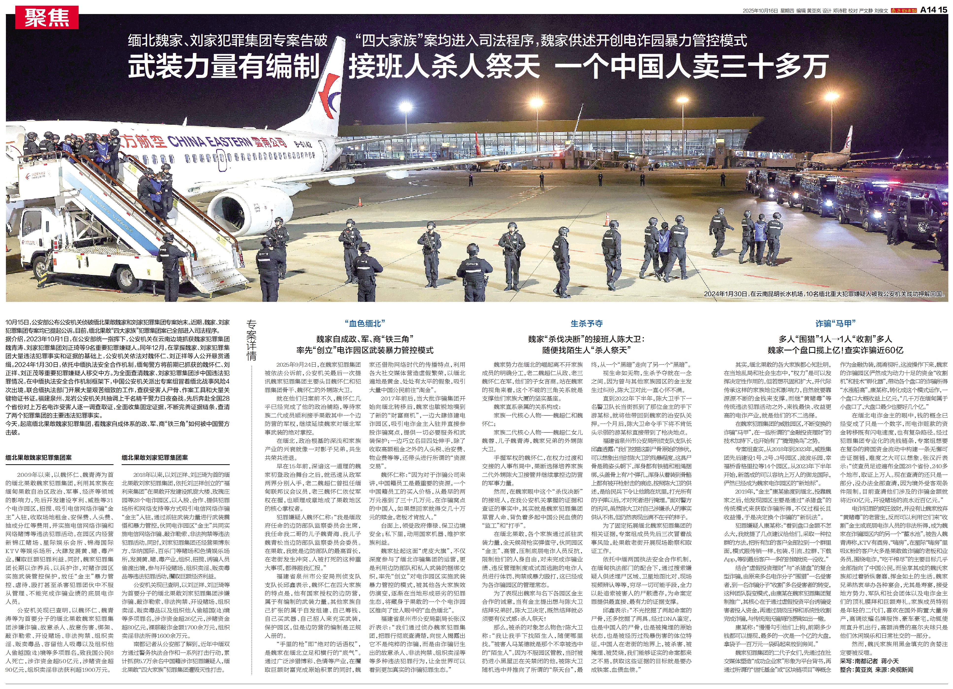 10月15日,公安部公布公安机关侦破缅北果敢魏家和刘家犯罪集团专案始末。