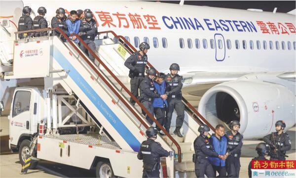 2024年1月30日,在云南昆明长水机场,10名缅北重大犯罪嫌疑人被我公安机关成功押解回国。