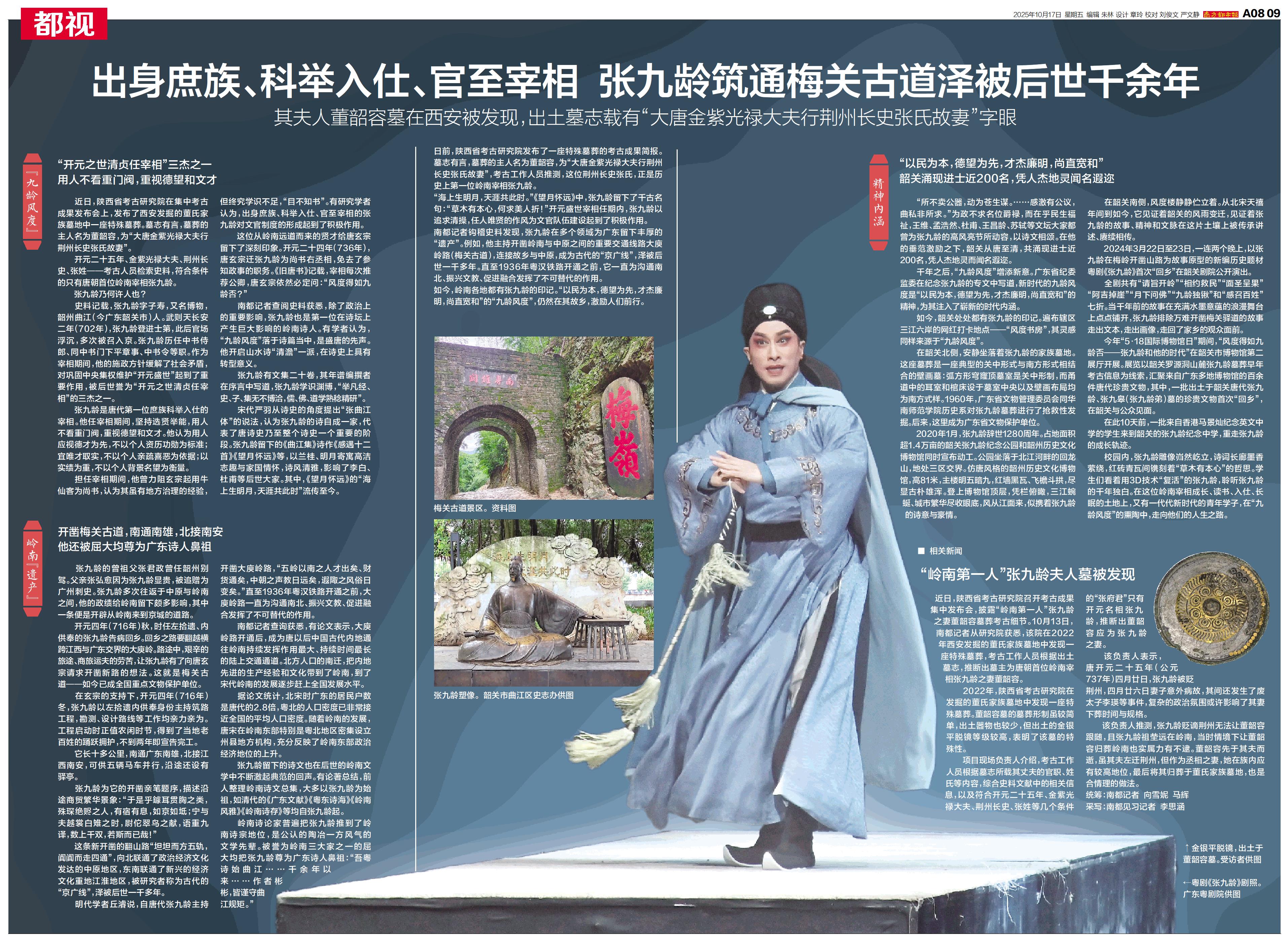 日前,陕西省考古研究院发布了一座特殊墓葬的考古成果简报。墓志有言,墓葬的主人名为董韶容,为“大唐金紫光禄大夫行荆州长史张氏故妻”,考古工作人员推测,这位荆州长史张氏,正是历史上第一位岭南宰相张九龄。