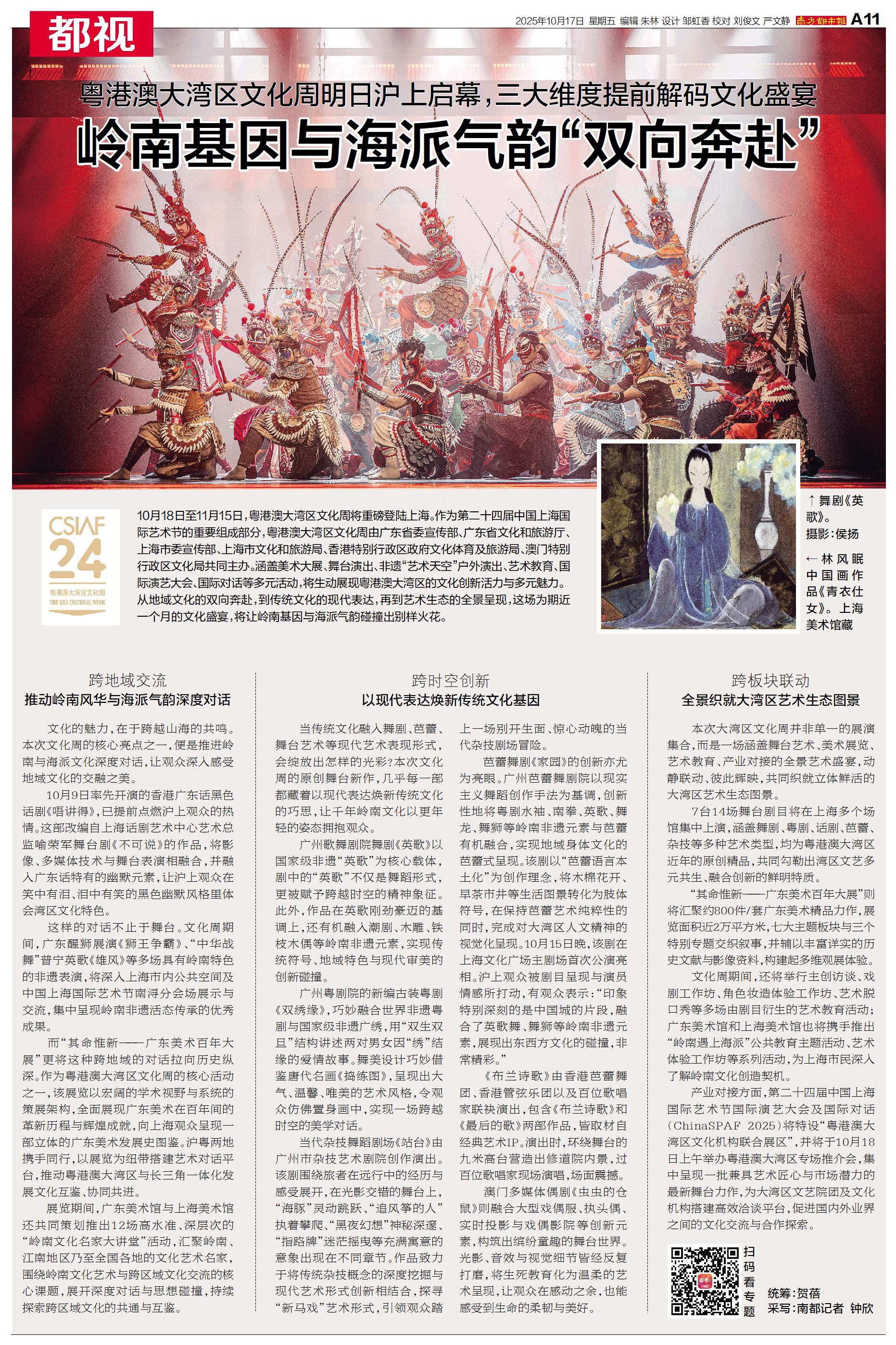 10月18日至11月15日,粤港澳大湾区文化周将重磅登陆上海。