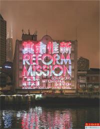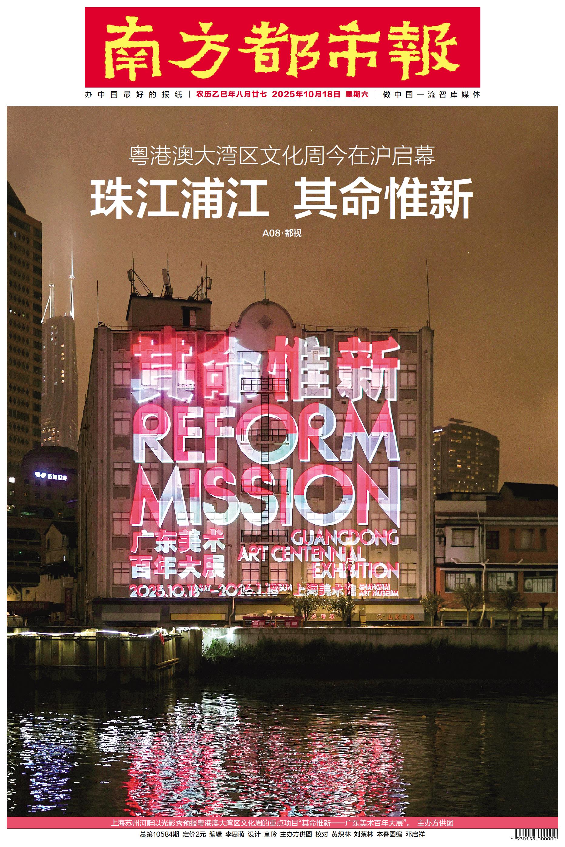 上海苏州河畔以光影秀预报粤港澳大湾区文化周的重点项目“其命惟新——广东美术百年大展”。
