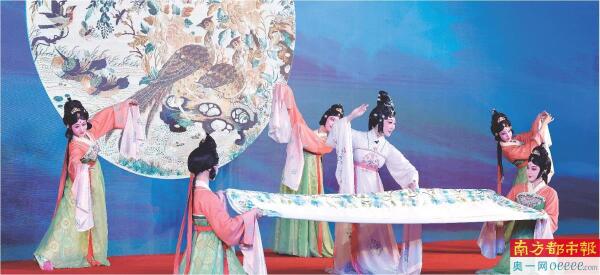 18日晚,广州粤剧院带来新编古装粤剧《双绣缘》作为开幕演出登场,选段表演亮相开幕式。