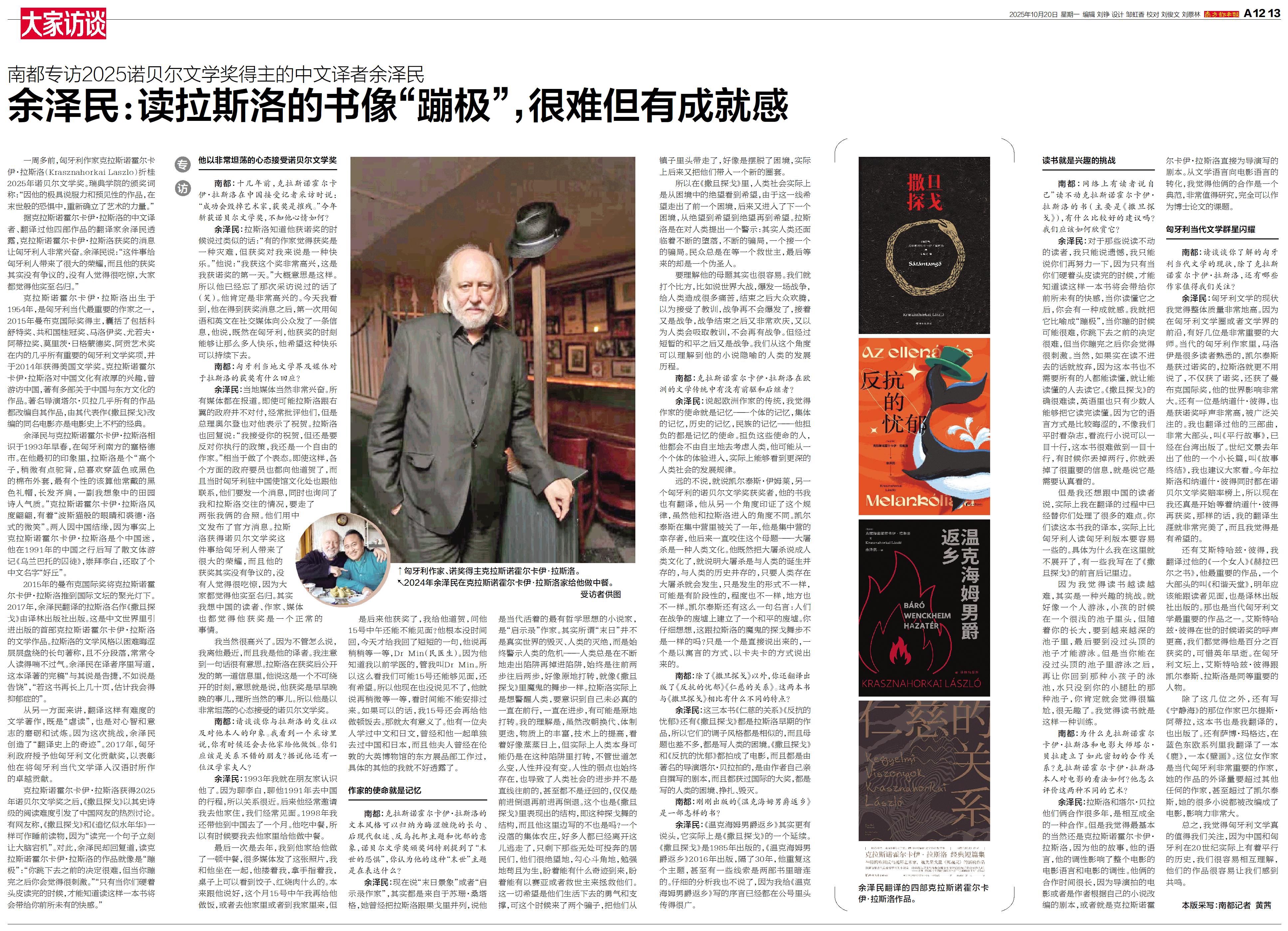 余泽民:读拉斯洛的书像“蹦极”,很难但有成就感