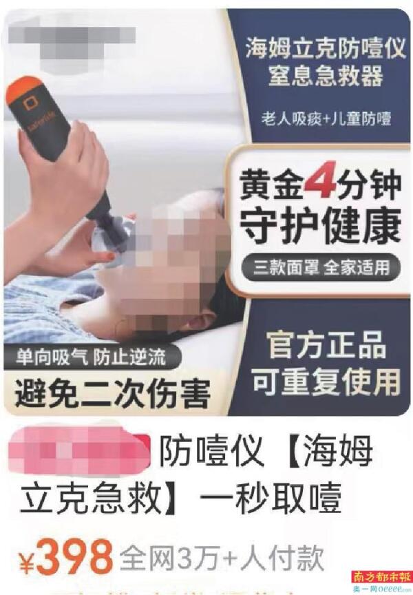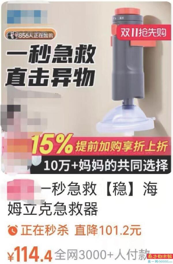 “一秒急救”“一键搞定”“小巧易携带”“老人小孩通用”……记者调查发现,不仅在短视频平台,主流电商平台上也有不少商家在售卖“海姆立克防噎仪”。其中,有的产品显示全网销量已超3万件。