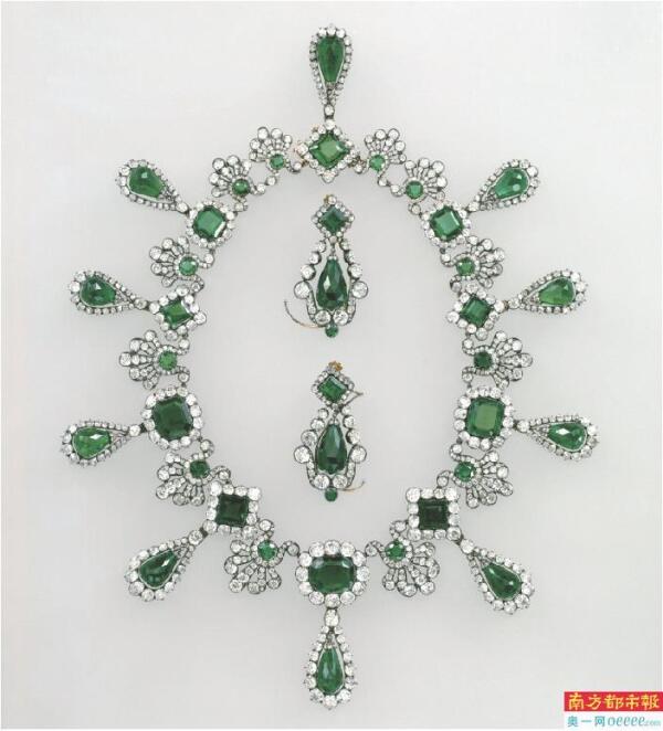 玛丽-路易丝皇后的祖母绿项链和耳环。 资料图