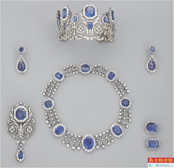 玛丽-阿梅莉王后与奥尔唐丝王后的冠冕、蓝宝石项链及蓝宝石耳环。 资料图