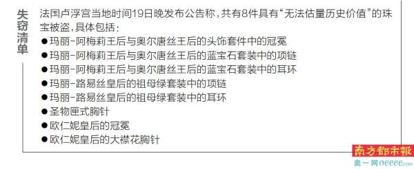 吉凯洛还表示,由于官方尚未公布本案具体细节,目前难以对被盗珠宝进行准确估价,但仅窃贼在逃跑时遗落的一顶“欧仁妮皇后后冠”可能就价值数千万欧元。他强调,这些被盗物品代表着法国的文化遗产,其价值根本无法单纯用金钱来衡量。