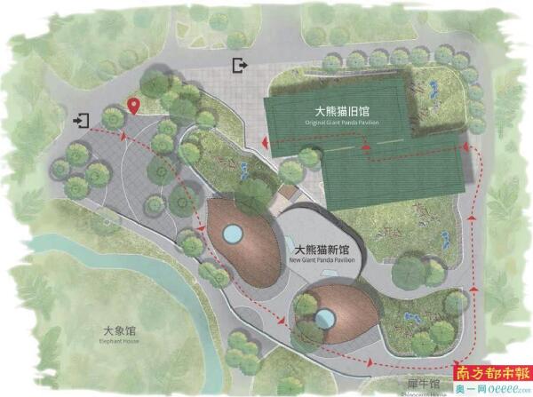 新馆严格按照《大熊猫国内借展场馆设计规范》执行落实,包含2个室内展厅、2个室外活动场、4个室内兽舍,以及饲料储存间、治疗间等其他设施管理用房。