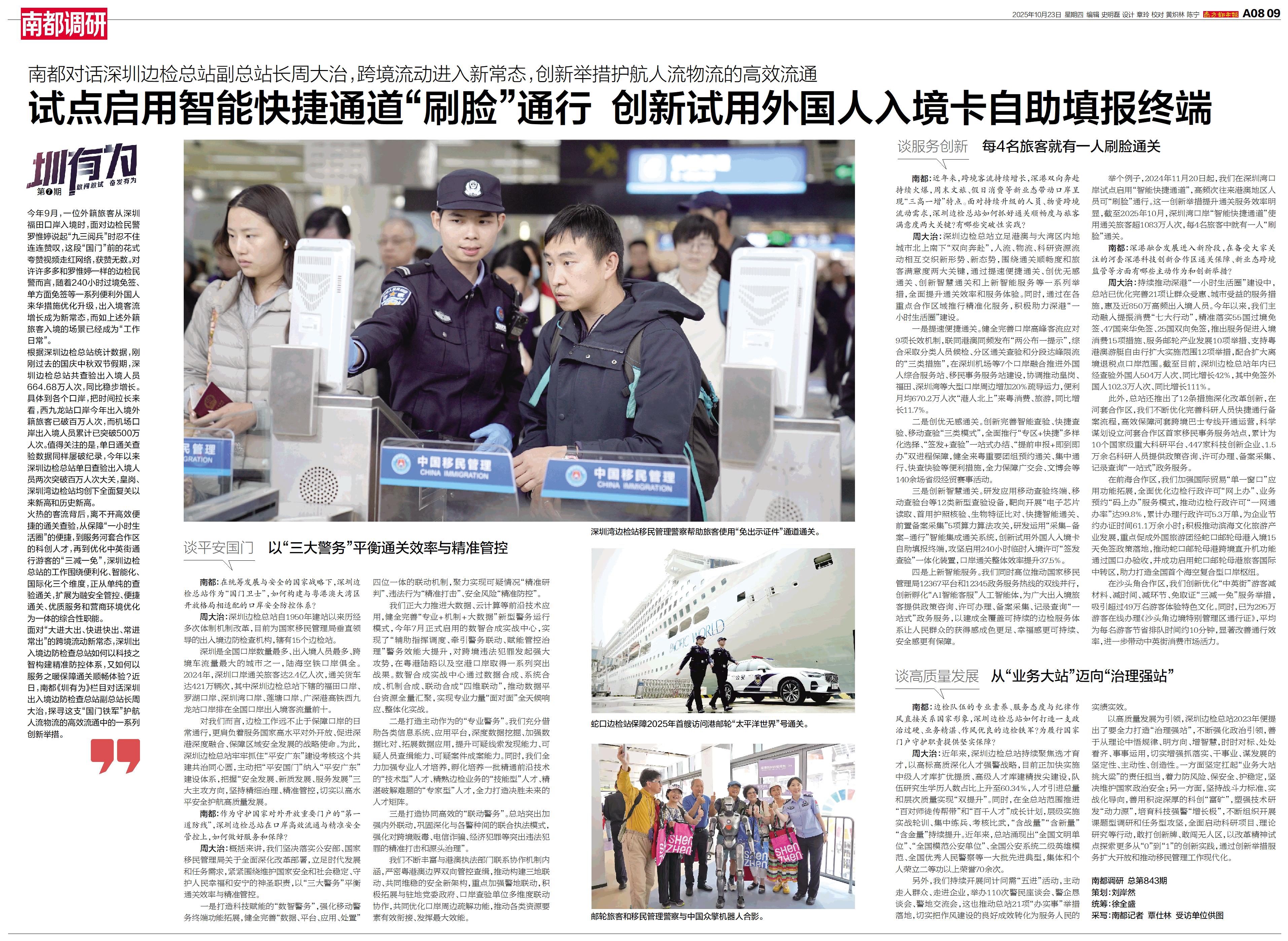 试点启用智能快捷通道“刷脸”通行 创新试用外国人入境卡自助填报终端