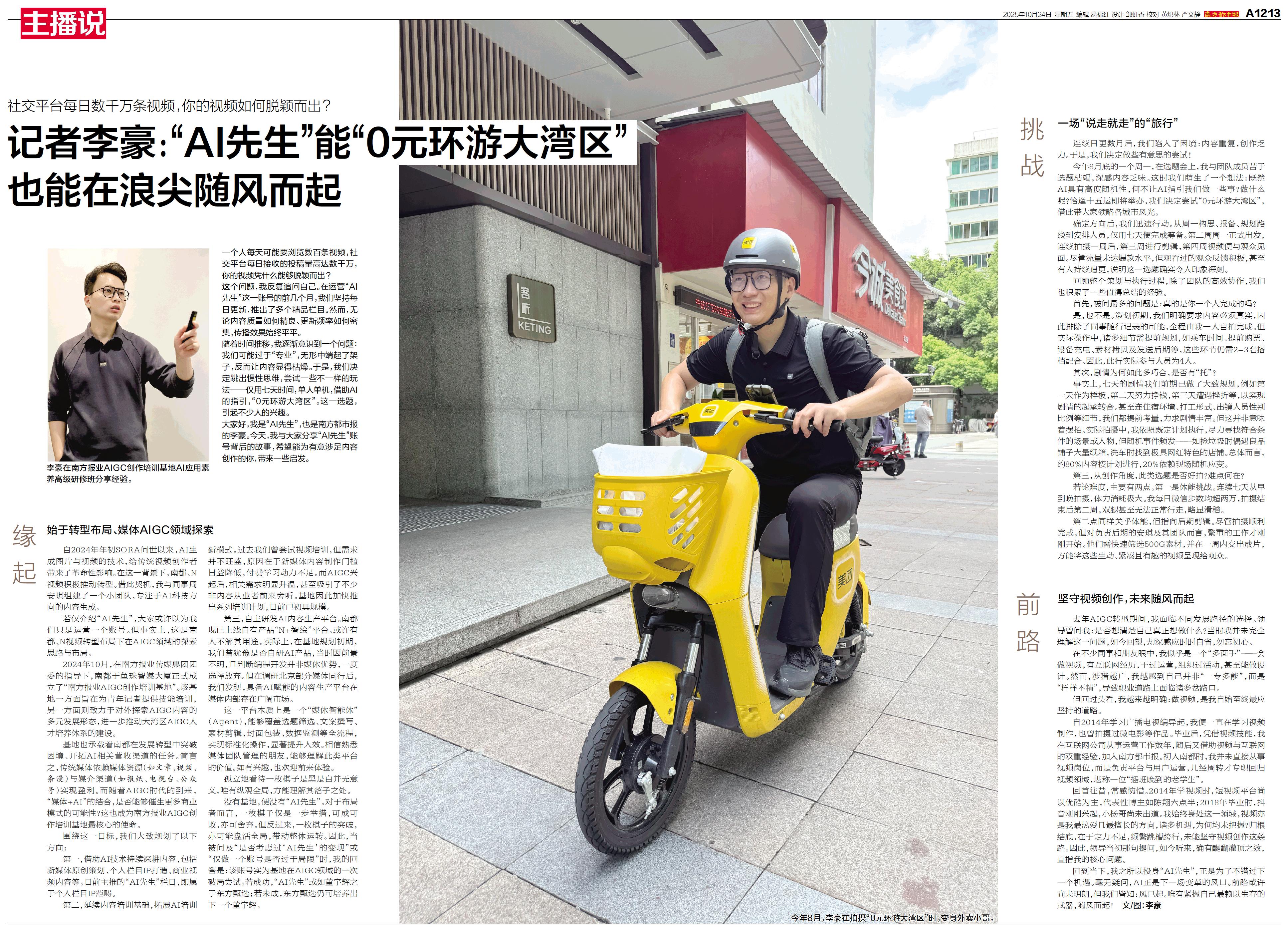 记者李豪:“AI先生”能“0元环游大湾区” 也能在浪尖随风而起