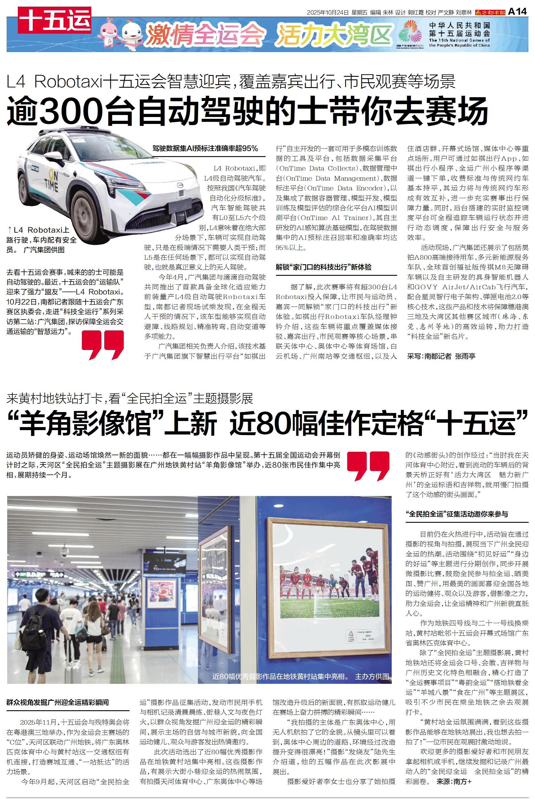 去看十五运会赛事,喊来的的士可能是自动驾驶的。最近,十五运会的“运输队”迎来了强力“盟友”——L4 Robotaxi。