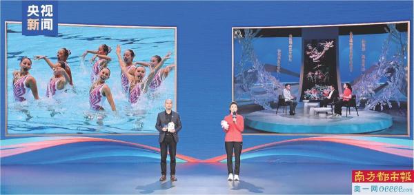 花样游泳世界冠军陈晓君、第十五届全运会吉祥物设计者刘平云推介全运会特别节目《艺术里的奥林匹克——粤动粤美》。