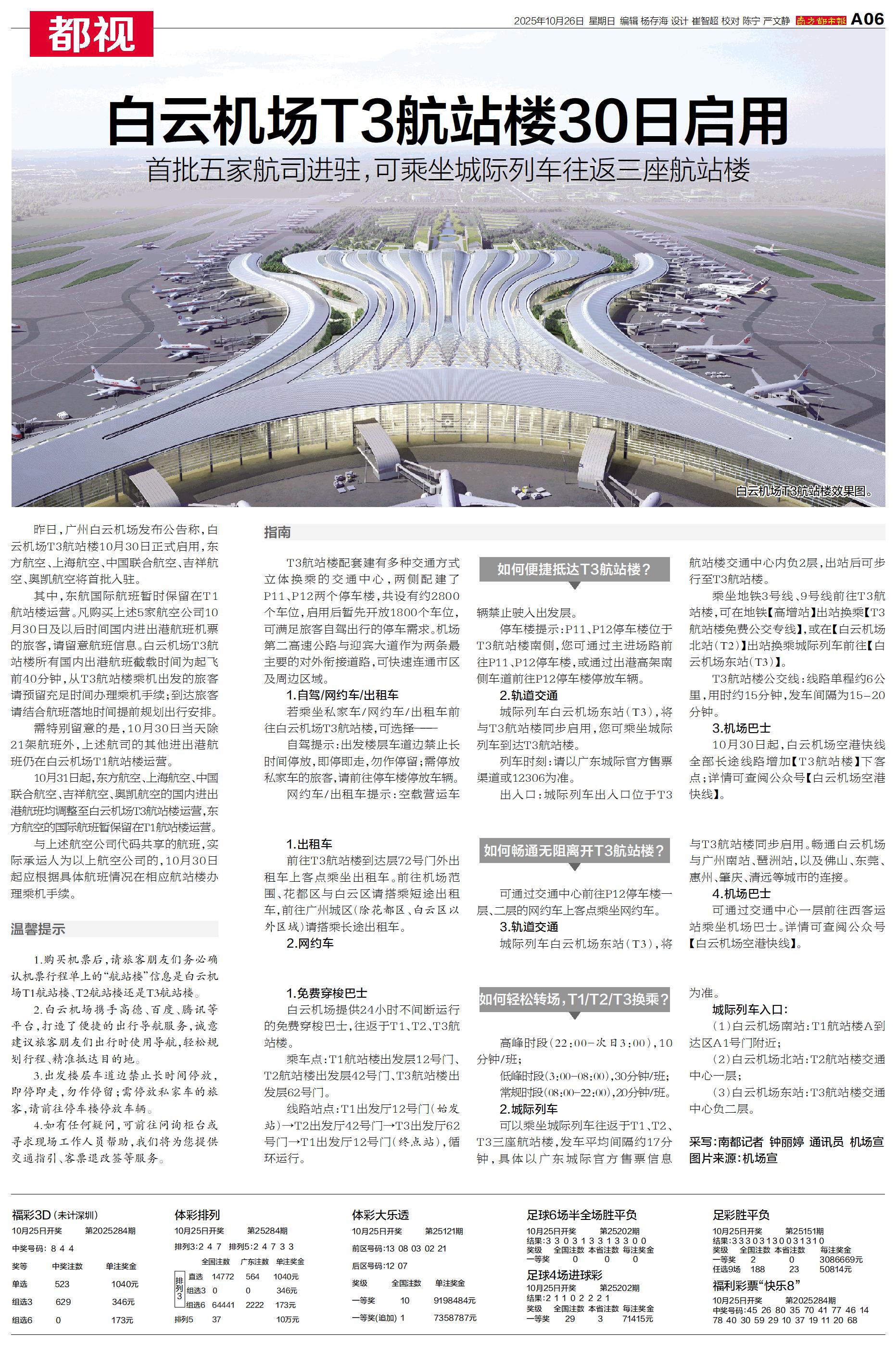 昨日,广州白云机场发布公告称,白云机场T3航站楼10月30日正式启用,东方航空、上海航空、中国联合航空、吉祥航空、奥凯航空将首批入驻。