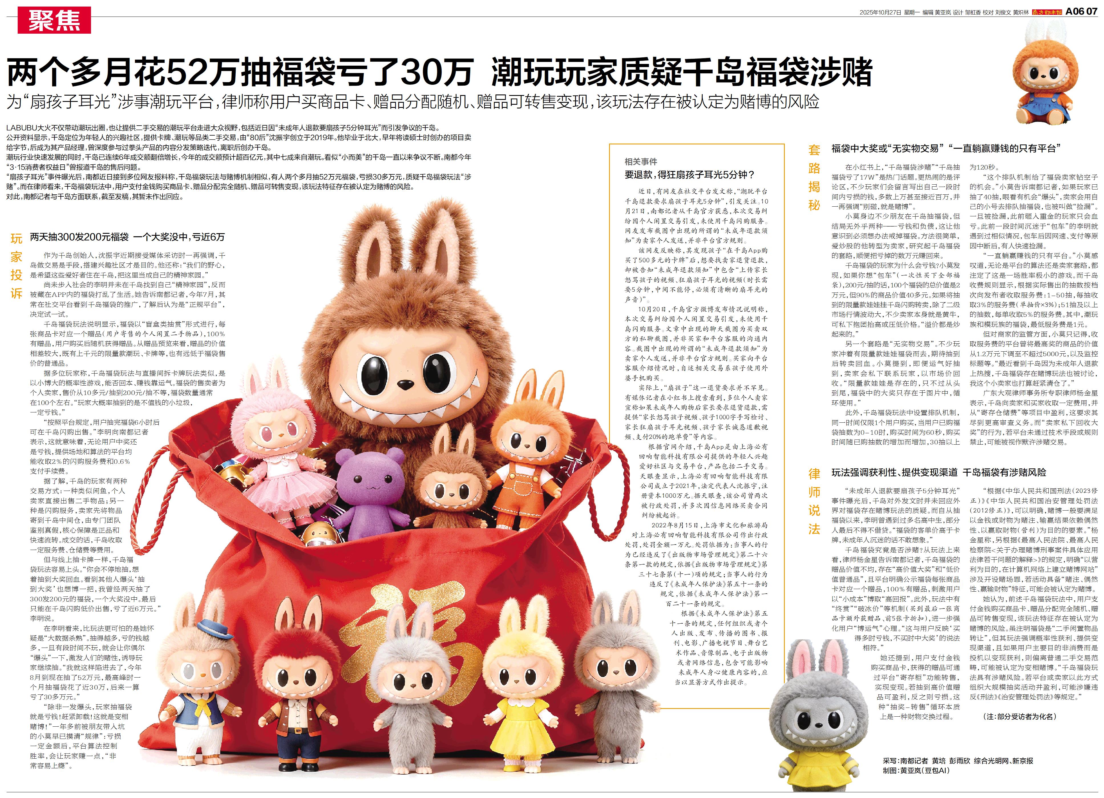 两个多月花52万抽福袋亏了30万 潮玩玩家质疑千岛福袋涉赌