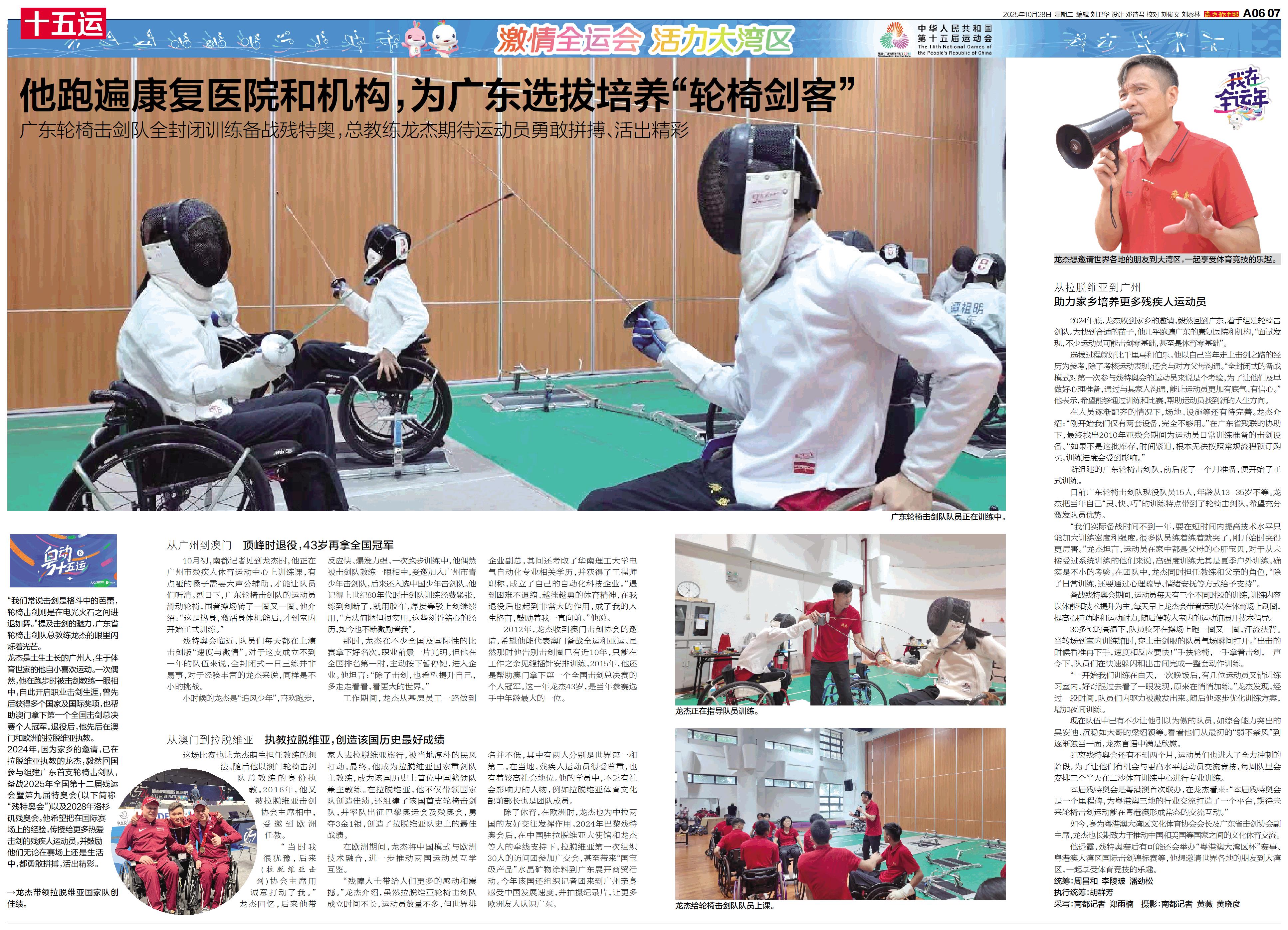 他跑遍康复医院和机构,为广东选拔培养“轮椅剑客”
