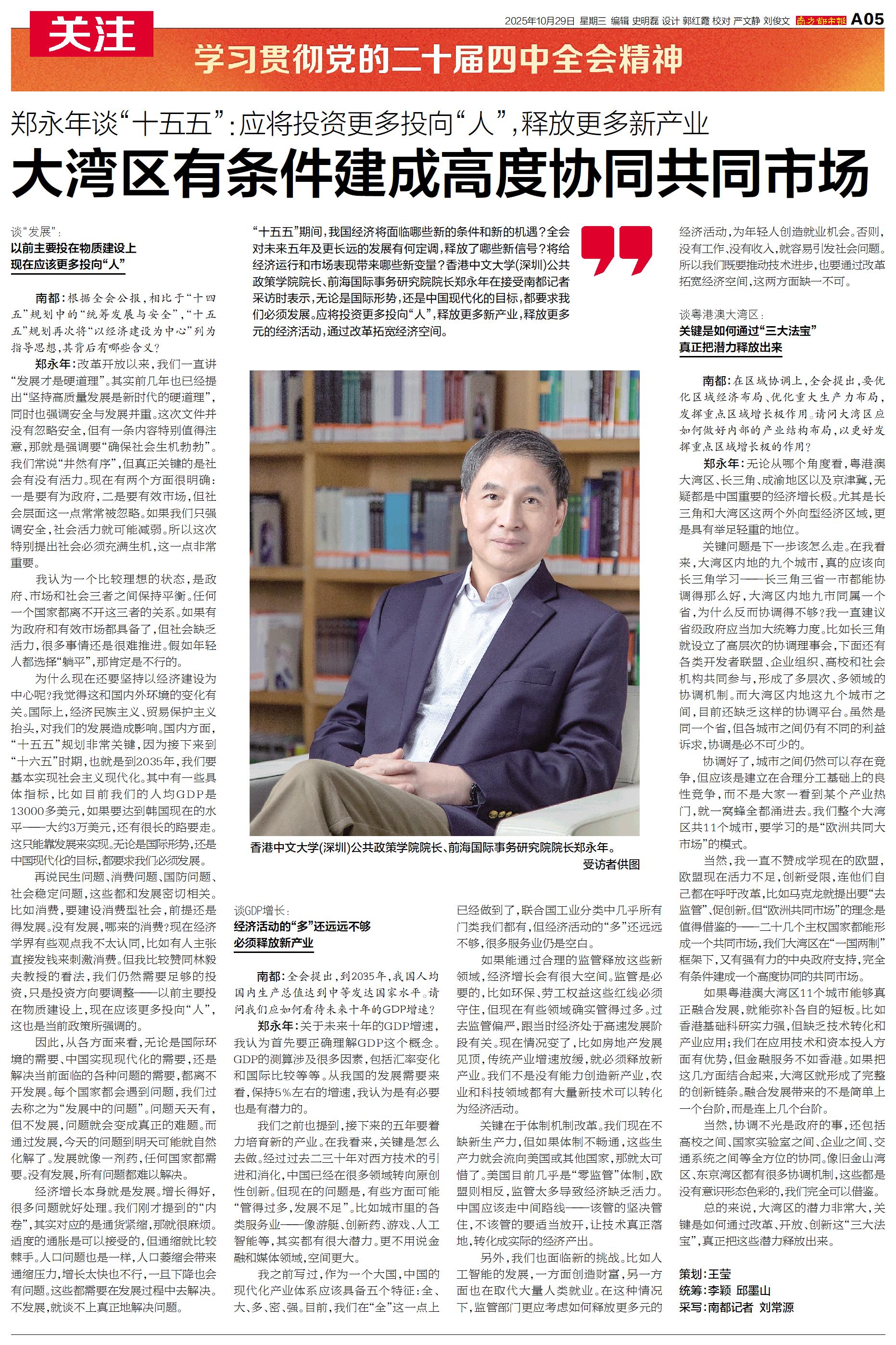 无论是国际形势,还是中国现代化的目标,都要求我们必须发展。应将投资更多投向“人”,释放更多新产业,释放更多元的经济活动,通过改革拓宽经济空间。