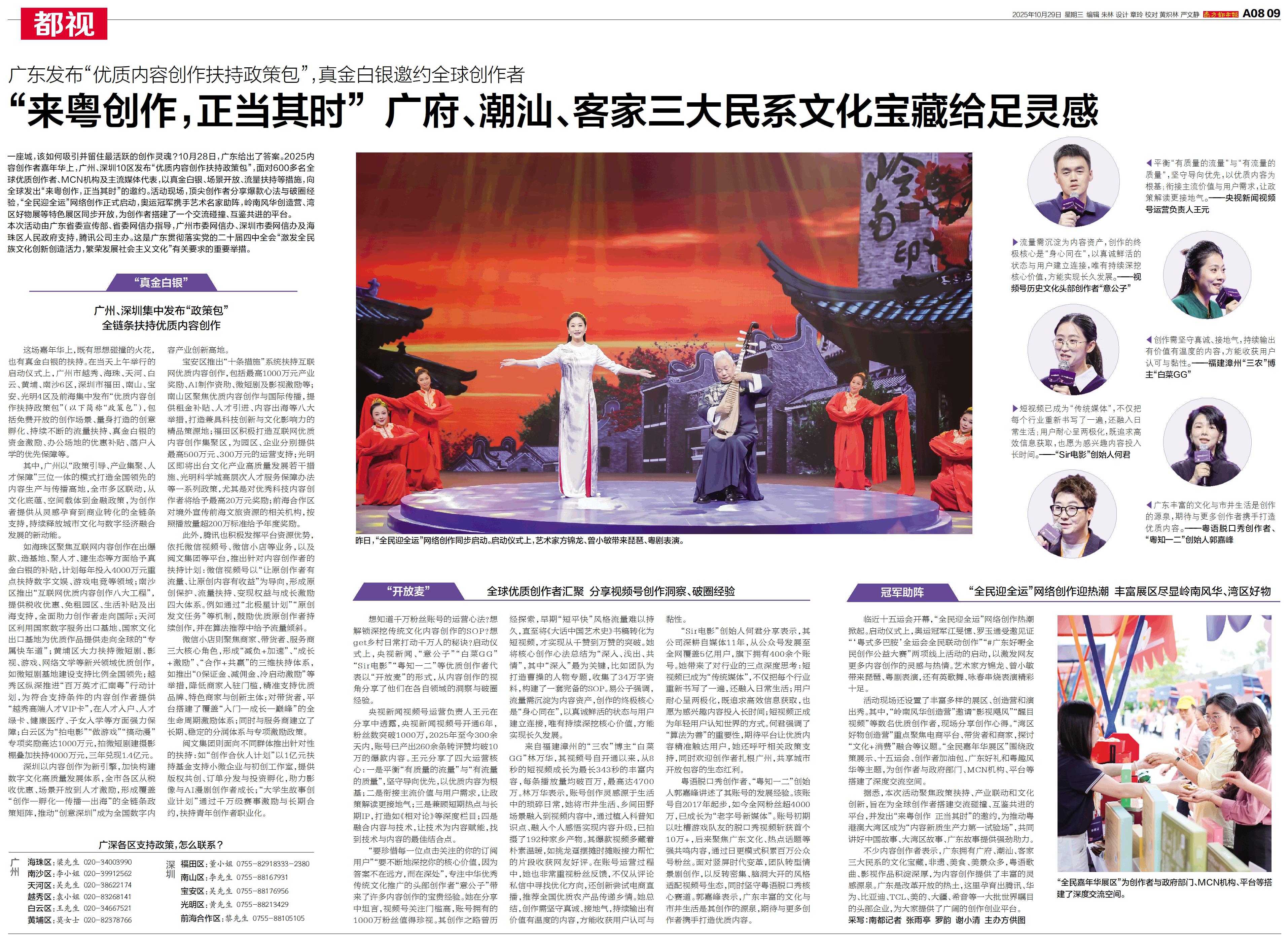 一座城,该如何吸引并留住最活跃的创作灵魂?10月28日,广东给出了答案。