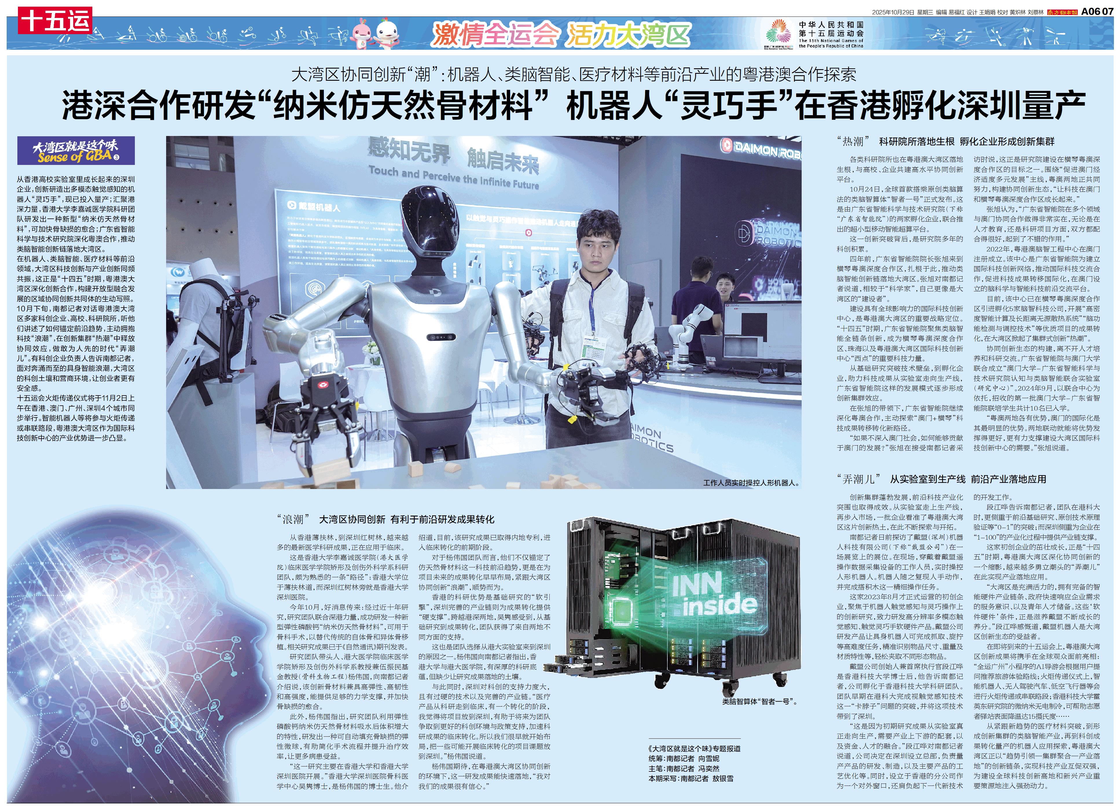 港深合作研发“纳米仿天然骨材料” 机器人“灵巧手”在香港孵化深圳量产