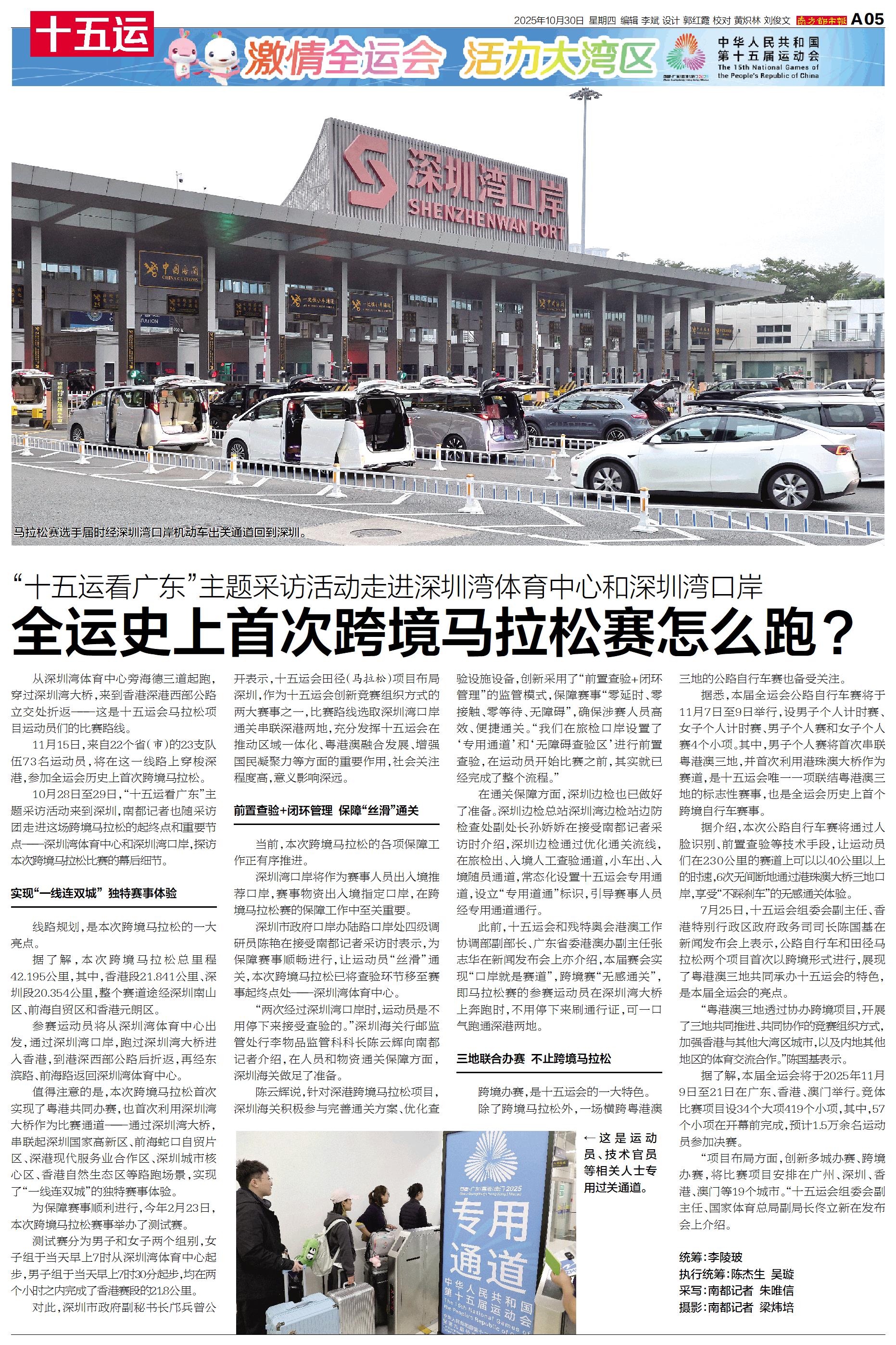 从深圳湾体育中心旁海德三道起跑,穿过深圳湾大桥,来到香港深港西部公路立交处折返——这是十五运会马拉松项目运动员们的比赛路线。
