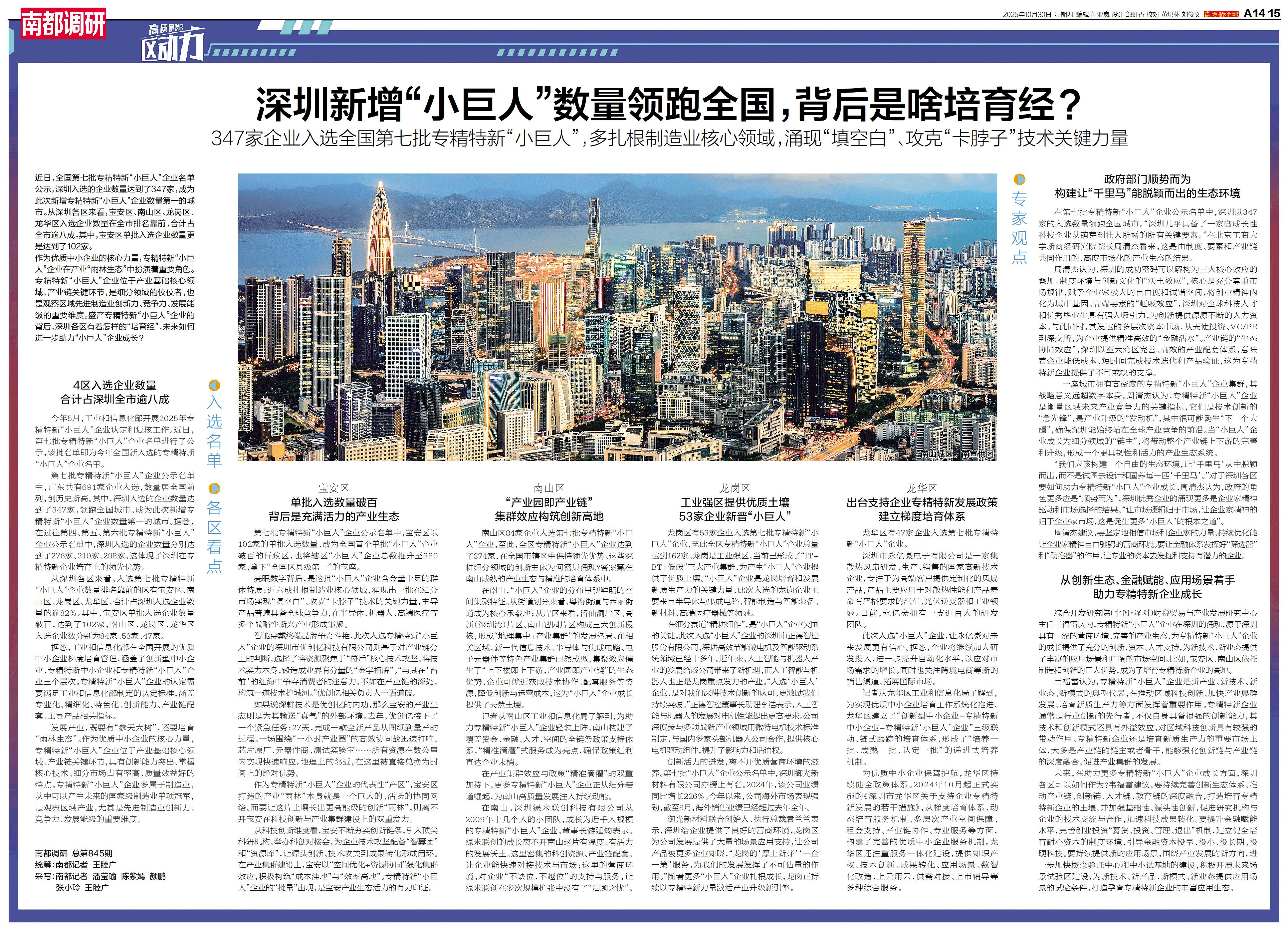 深圳新增“小巨人”数量领跑全国,背后是啥培育经?