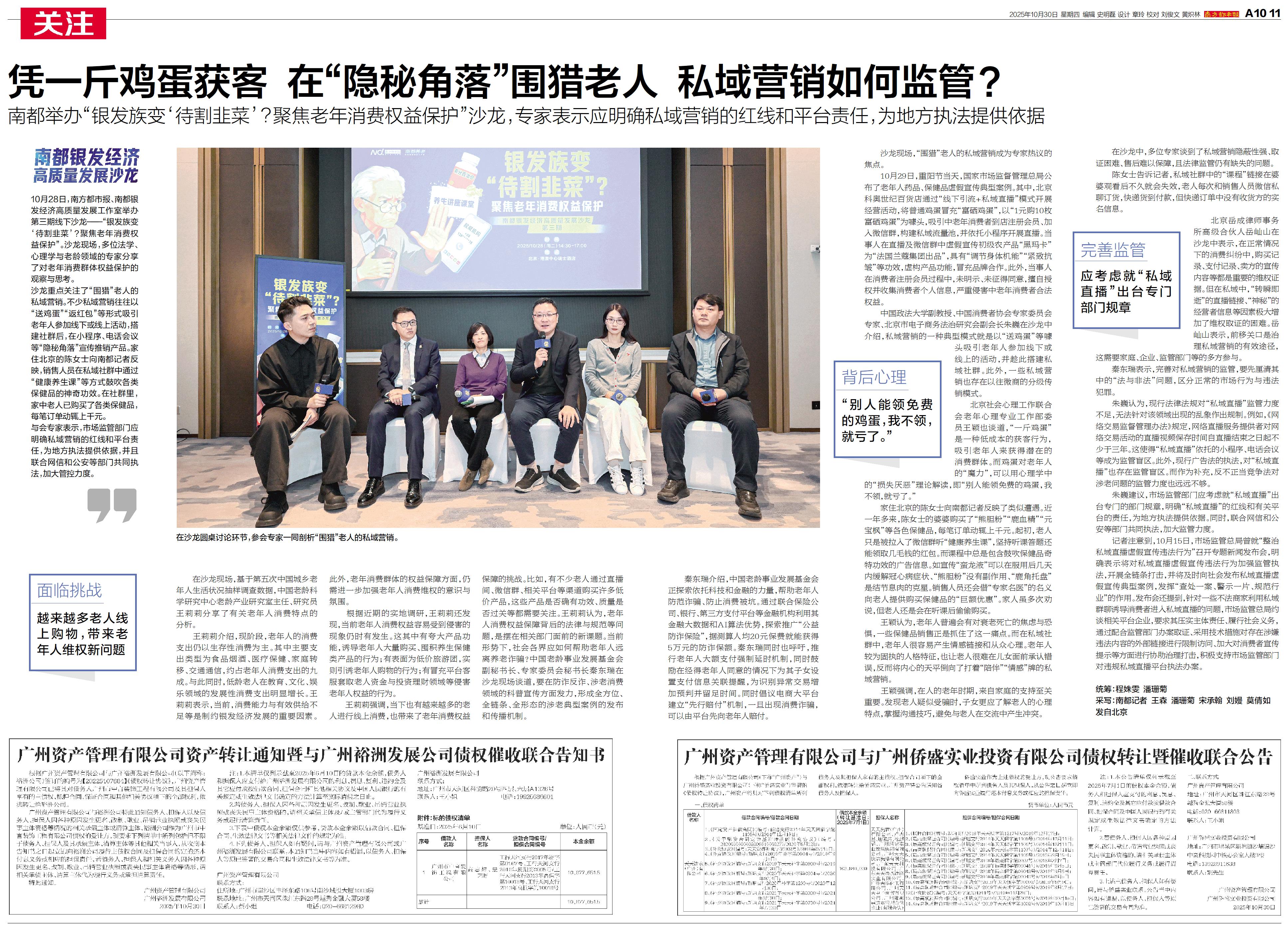 10月28日,南方都市报、南都银发经济高质量发展工作室举办第三期线下沙龙——“银发族变‘待割韭菜’?聚焦老年消费权益保护”。