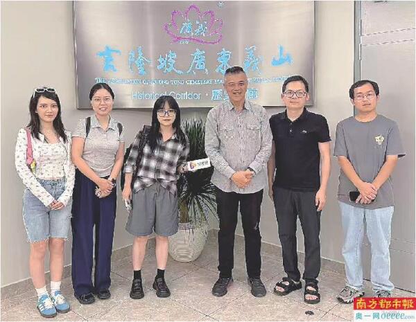 南都N视频采访团和吉隆坡广东义山主席杨博耀(右三)的合影。