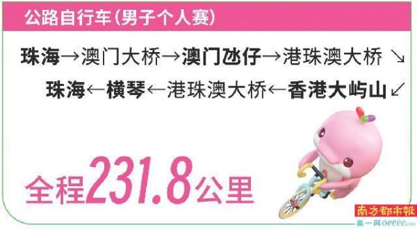 据了解,公路自行车赛(男子个人赛)将于11月8日举行,全程231.8公里的赛道以港珠澳大桥为纽带,串联香港(55.8公里)、澳门(13.5公里)、珠海(117.7公里)及横琴粤澳深度合作区(44.8公里)。通过首创的“一赛事一次跨三境”和“前置查验、封闭运作、无感通关”新模式,来自内地及港澳的104名运动员将以超过40公里时速,6次无间断地通过三地口岸,享受“不踩刹车”的无感通关体验,领略湾区融合之美。