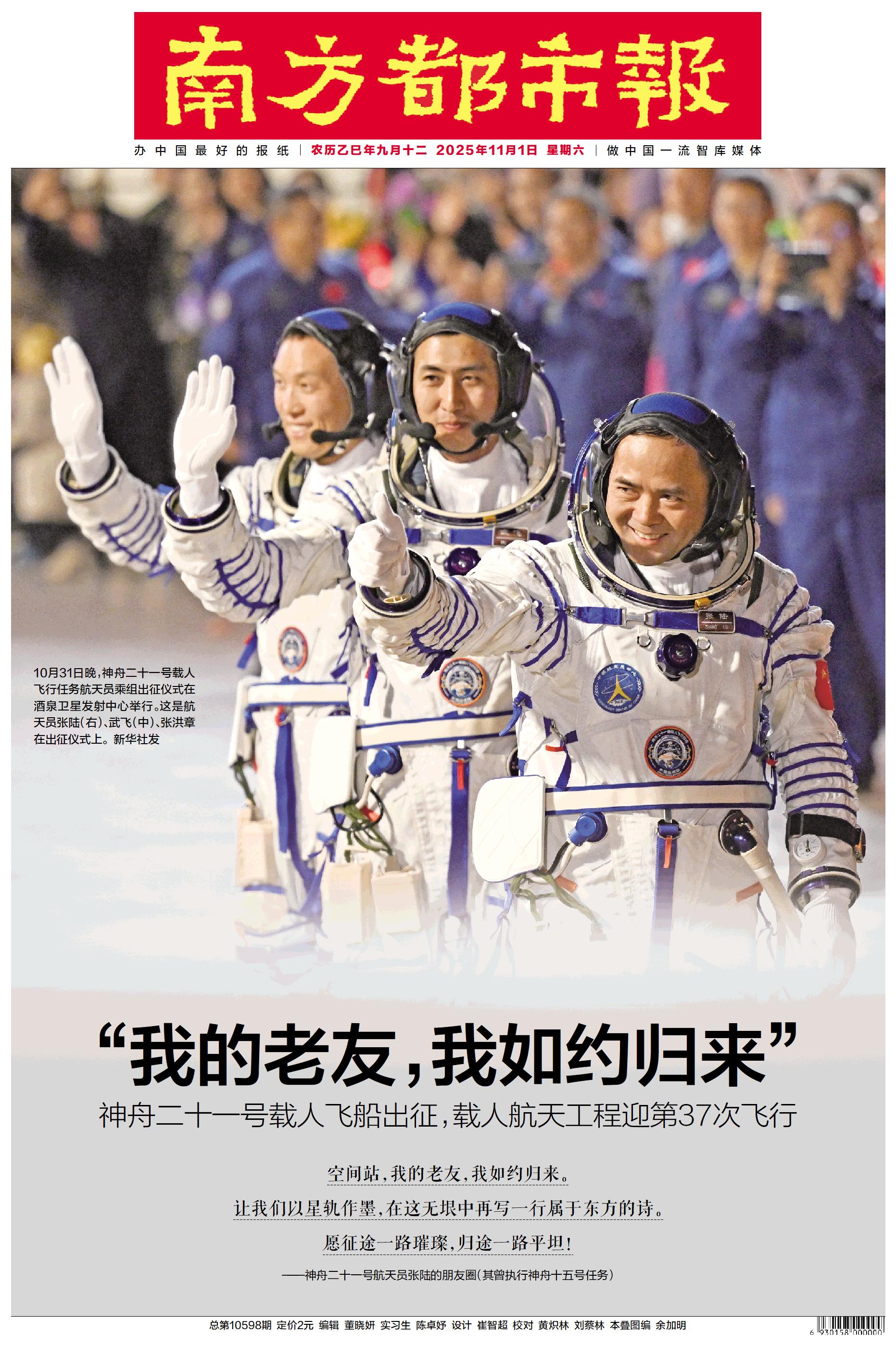 10月31日晚,神舟二十一号载人飞行任务航天员乘组出征仪式在酒泉卫星发射中心举行。