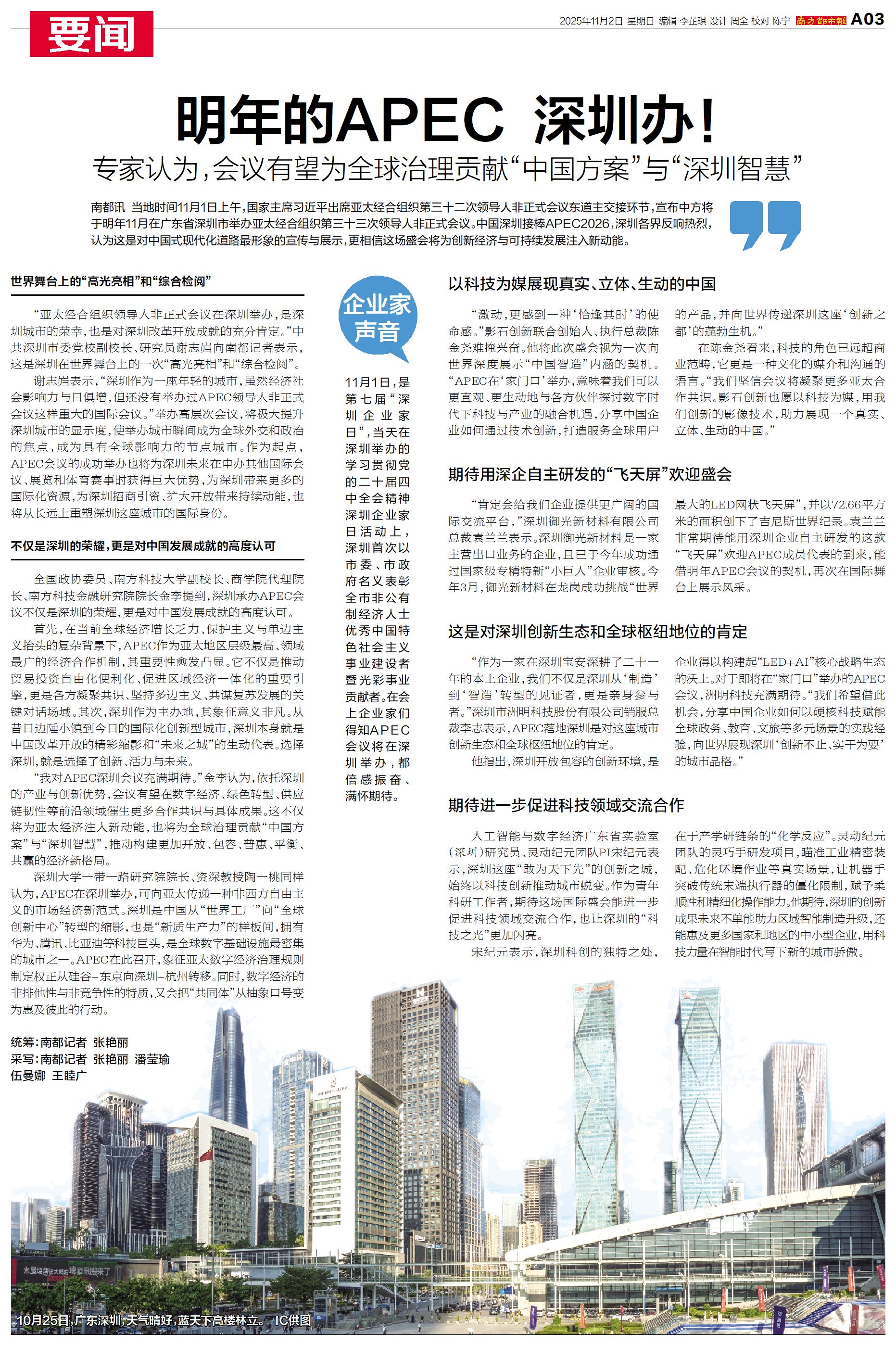 当地时间11月1日上午,国家主席习近平出席亚太经合组织第三十二次领导人非正式会议东道主交接环节,宣布中方将于明年11月在广东省深圳市举办亚太经合组织第三十三次领导人非正式会议。
