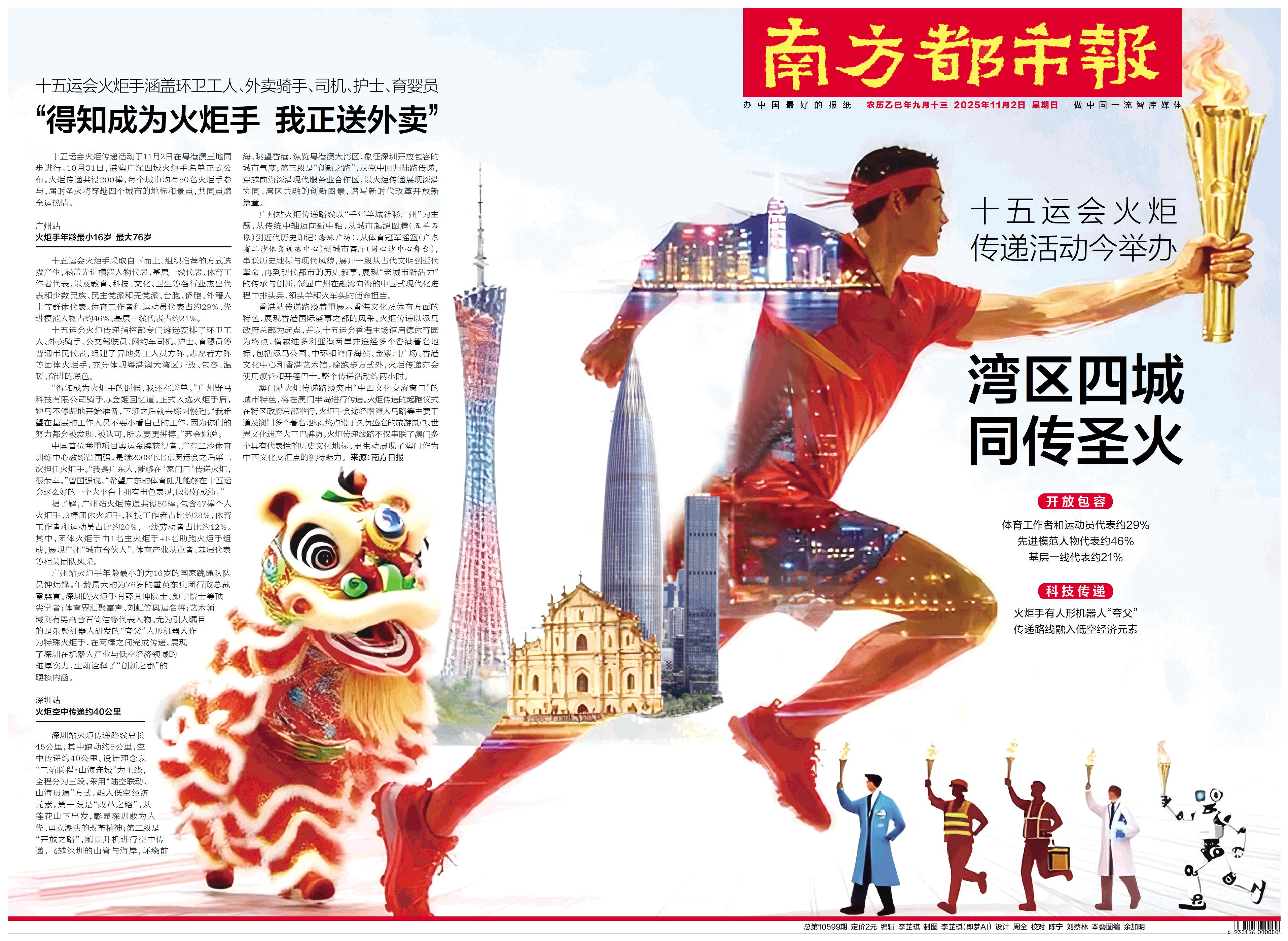 10月31日,港澳广深四城火炬手名单正式公布。火炬传递共设200棒,每个城市均有50名火炬手参与,届时圣火将穿越四个城市的地标和景点,共同点燃全运热情。