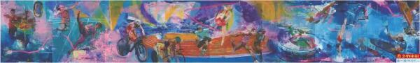 宋陆京:我们把30个画家组织起来分成3组进行集体创作。当然在合作的时候也非常困难,有时候艺术家各持己见,他有他的想法,别人有别人的想法。有女画家也有男画家,在合作的时候对于构图、手法等经常会有一些争执。对于这几张画,我当时就有一个构思。大家不商量,也没构图,喜欢怎么画就怎么画。我就想快乐画画,呈现体育运动员的风貌。但是后面还是有一定的难度,因为相互间的交流或者风格不一致,需要有整体的统一,有组长或者领头的来把控和谐性。所以这一块工作给广州画院增加了凝聚力和团结性。平时都是闭门造车,画家在各自的画室创作,很少进行集体创作。这次活动,为了这个展览,我们大家有时候也委曲求全,也会牺牲自己成就别人,或者为了自己的作品,大家发挥牺牲小我成就大我的精神。