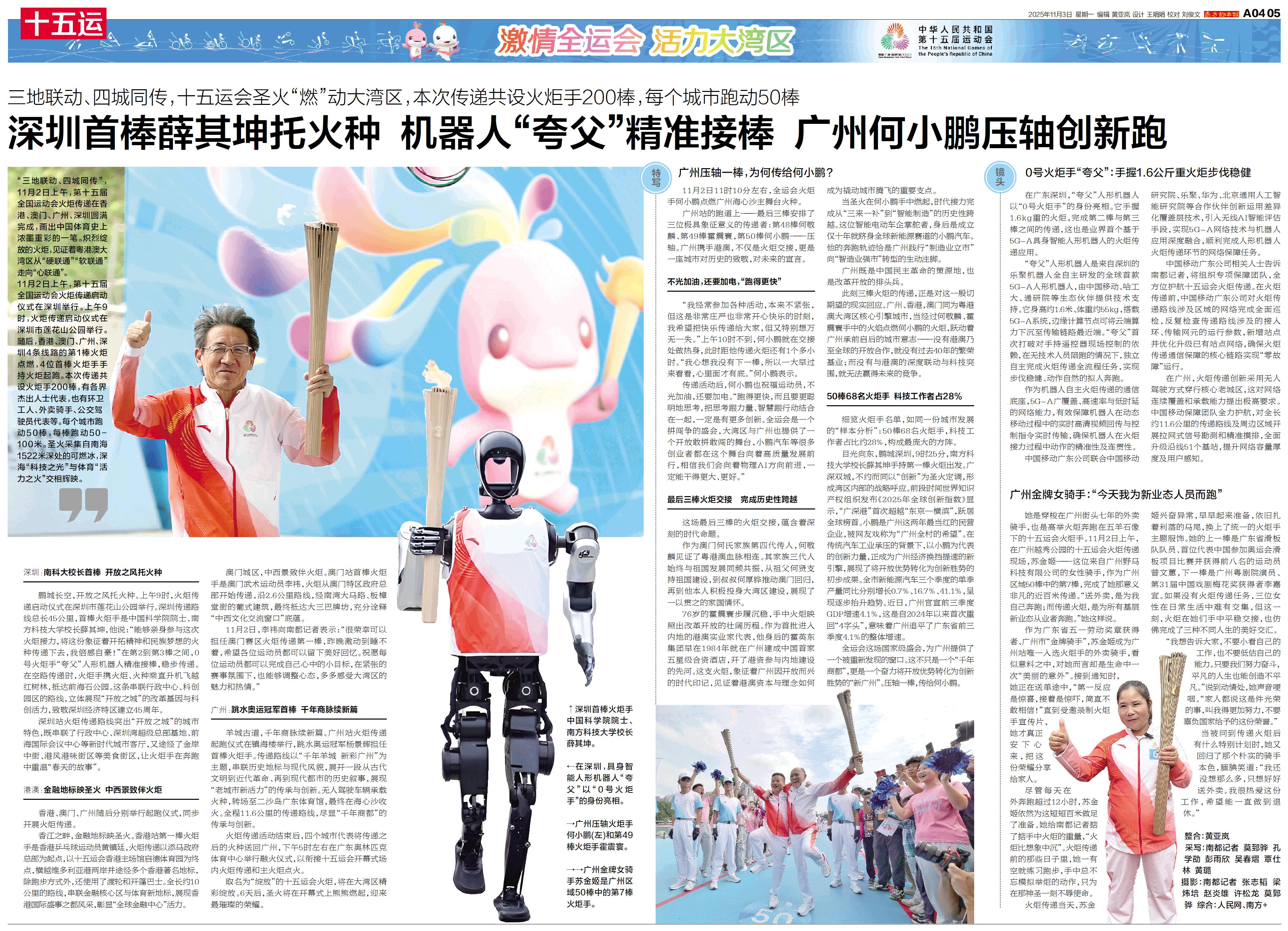 深圳首棒薛其坤托火种 机器人“夸父”精准接棒 广州何小鹏压轴创新跑