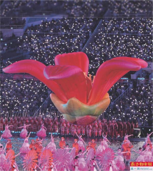 11月1日晚,十五运会开幕式第二次带观众全要素彩排按照正式流程进行,图为文体表演。 十五运会穗执委会供图 宋向红 摄
