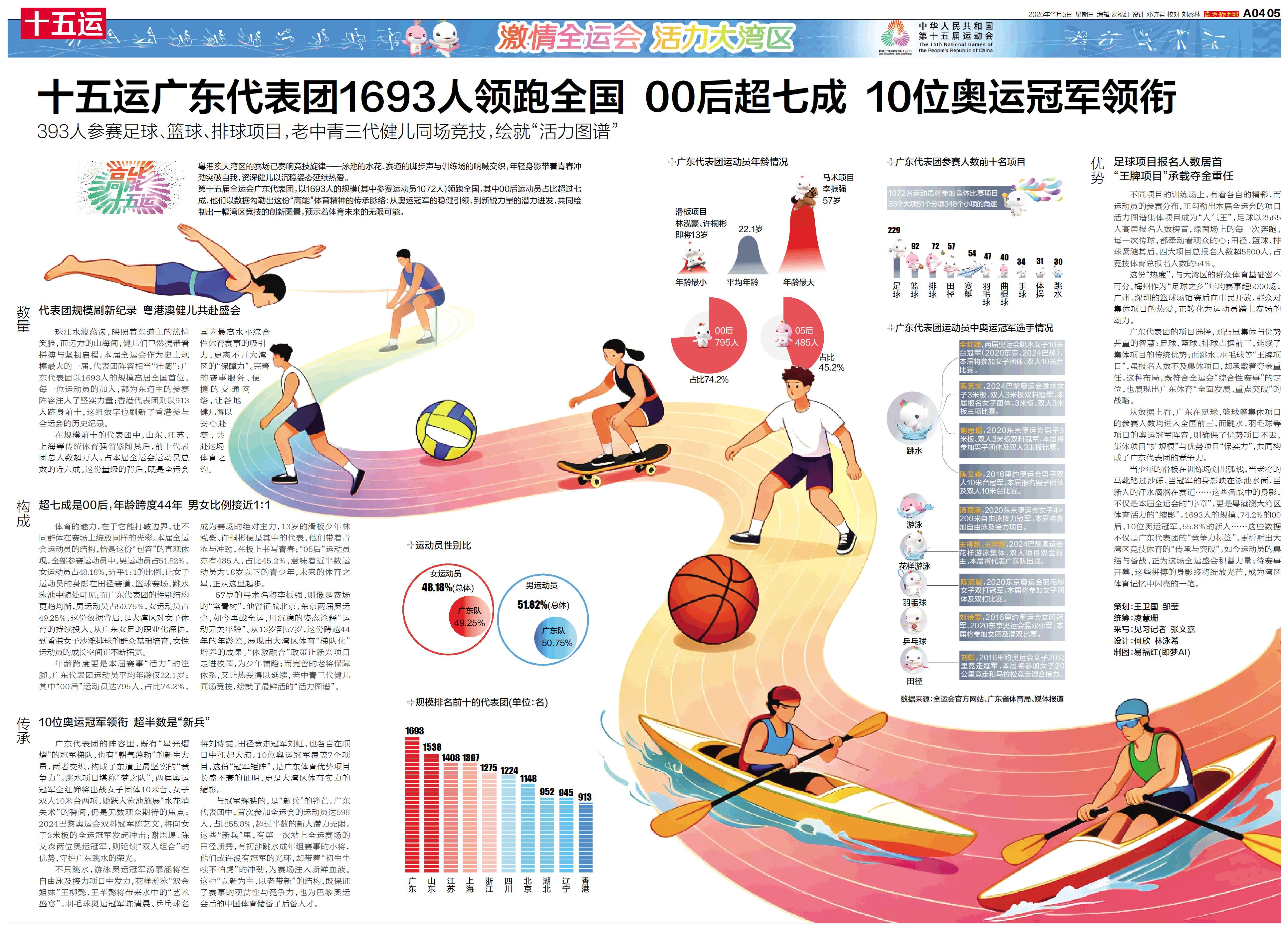十五运广东代表团1693人领跑全国 00后超七成 10位奥运冠军领衔