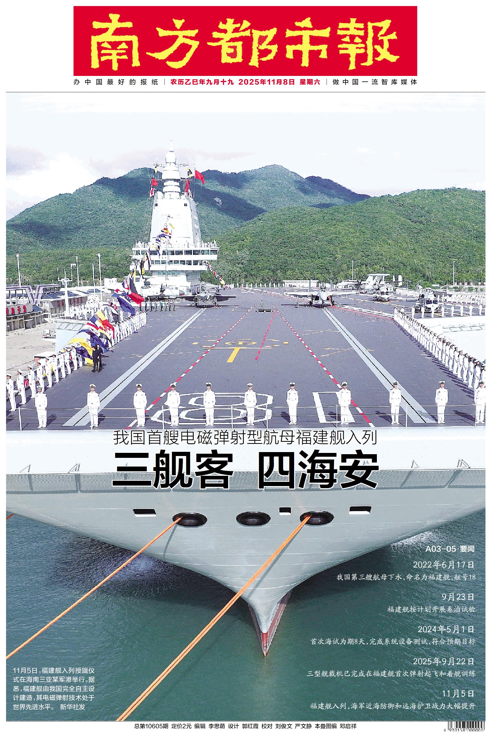 11月5日,福建舰入列授旗仪式在海南三亚某军港举行。