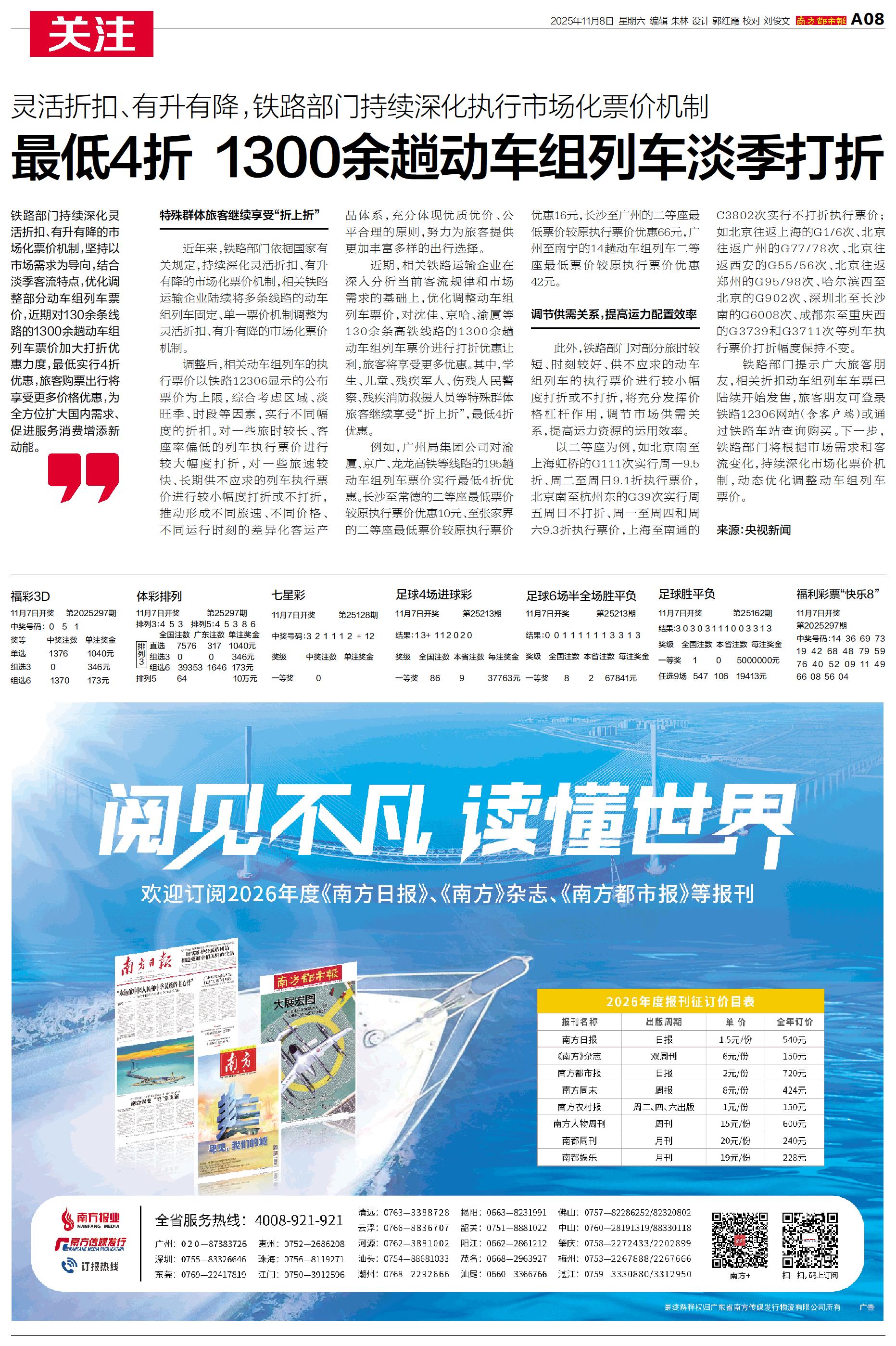 铁路部门近期对130余条线路的1300余趟动车组列车票价加大打折优惠力度,最低实行4折优惠。