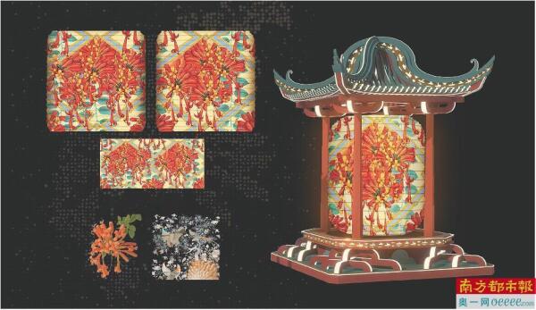 《湾区四时·花灯戏韵》巨型灯笼戏台设计图。