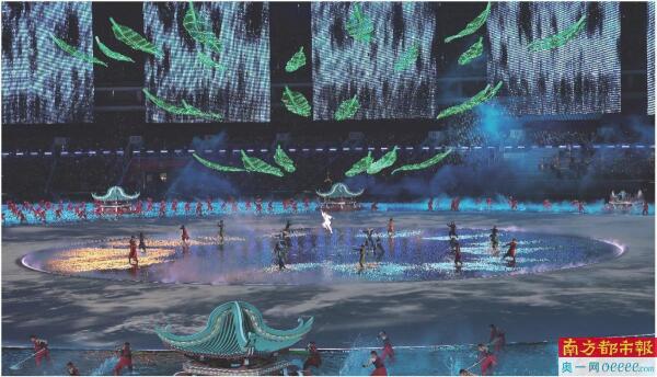 在全运会开幕式上,粤曲表演舞台的《湾区四时·花灯戏韵》巨型灯笼戏台装饰设计和《雨打芭蕉·绿韵岭南》艺术装置让人惊艳,更让大家感受到了岭南传统文化的魅力。