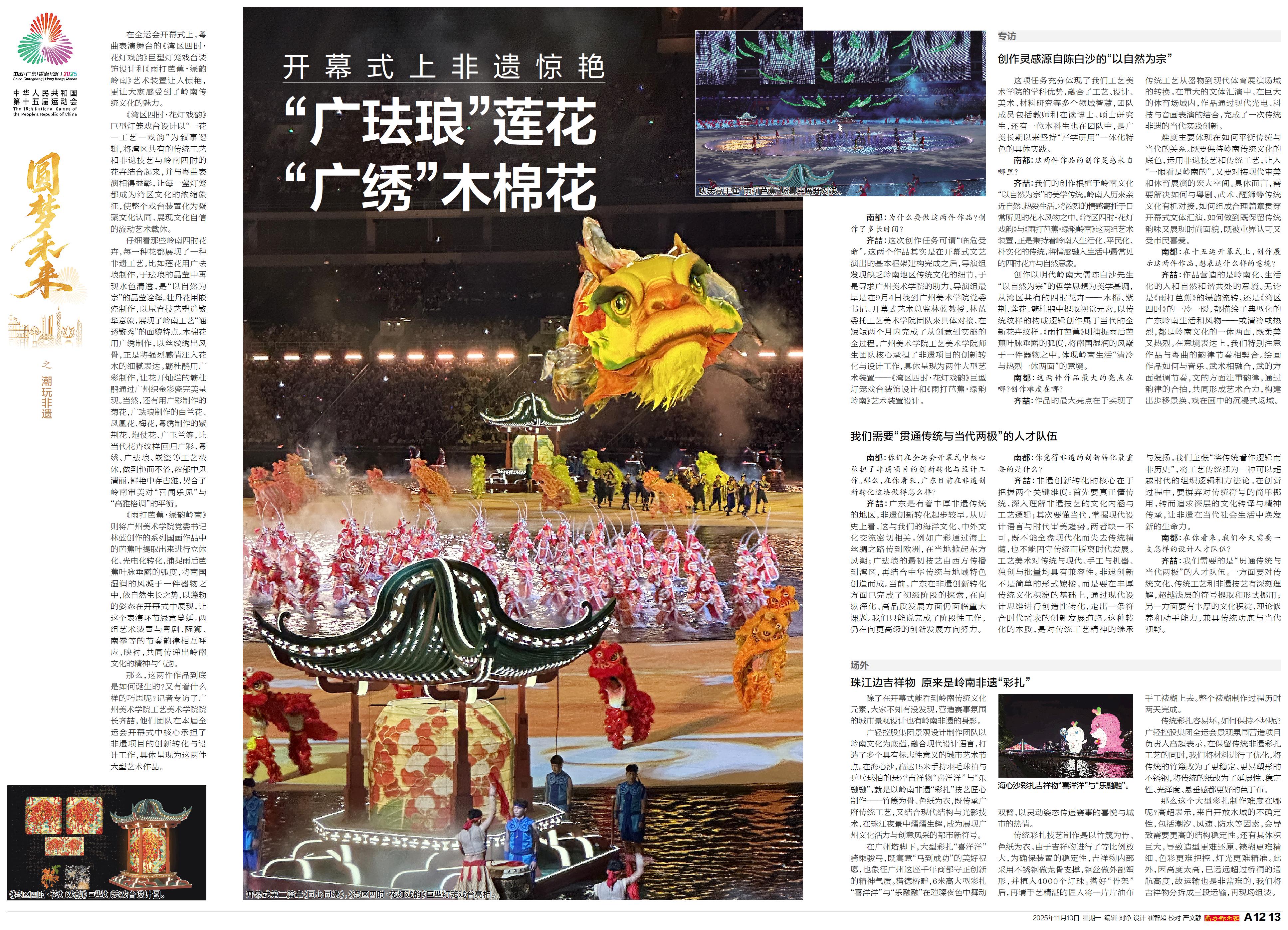 在全运会开幕式上,粤曲表演舞台的《湾区四时·花灯戏韵》巨型灯笼戏台装饰设计和《雨打芭蕉·绿韵岭南》艺术装置让人惊艳,更让大家感受到了岭南传统文化的魅力。