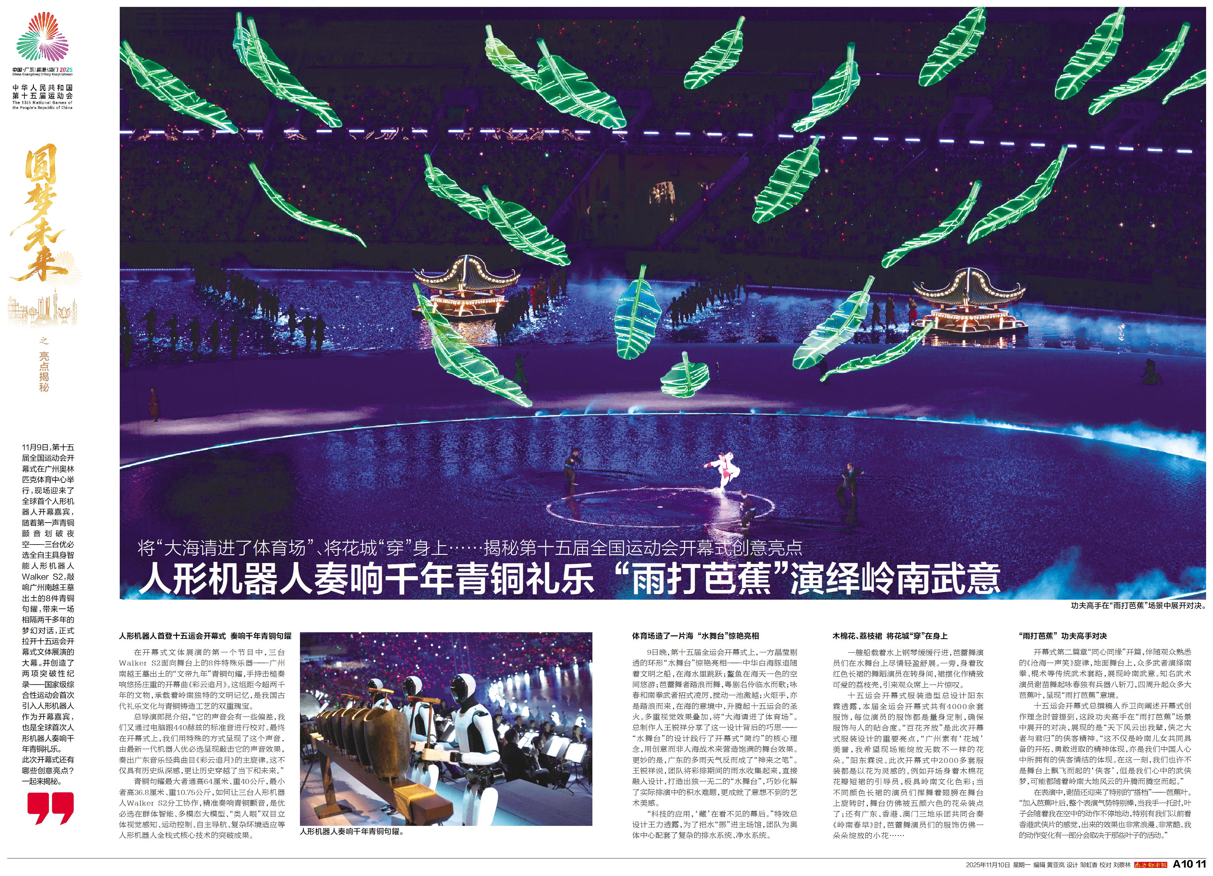 11月9日,第十五届全国运动会开幕式在广州奥林匹克体育中心举行,现场迎来了全球首个人形机器人开幕嘉宾。