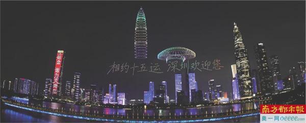 深圳湾人才公园2000架无人机夜空表演助阵第十五届全国运动会。