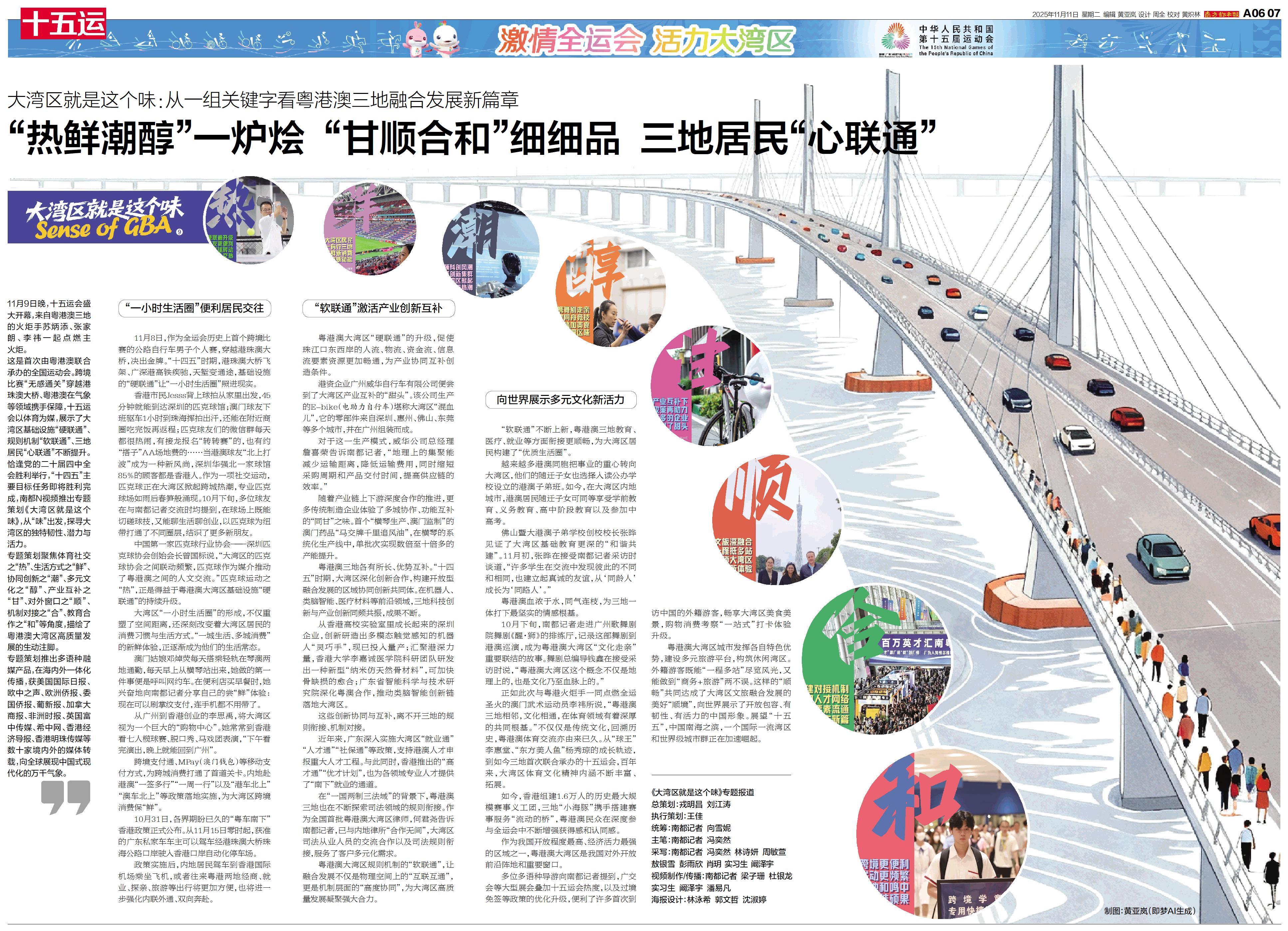 11月9日晚,十五运会盛大开幕,来自粤港澳三地的火炬手苏炳添、张家朗、李祎一起点燃主火炬。