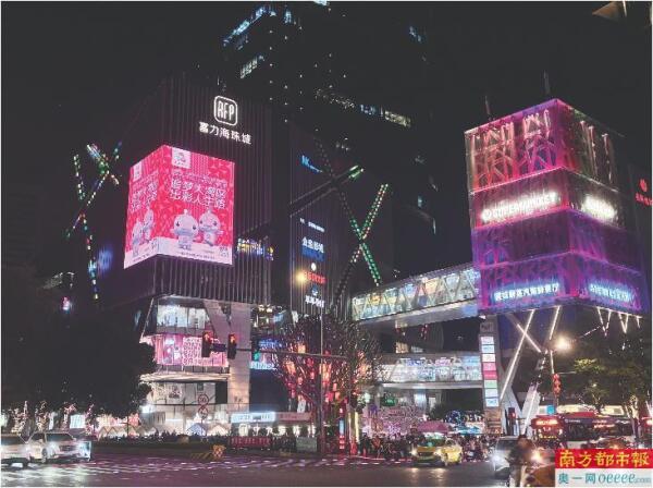 在广州市海珠区江南西商圈富力海珠城的户外LED大屏上,十五运会的宣传片正循环播放着——画面里造型灵动的十五运会吉祥物“喜洋洋”“乐融融”与屏幕外的人流交织,构成了一道独特的城市风景线。