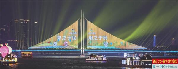 猎德大桥的大屏为十五运会打Call。 南都记者 吴泽嘉 摄