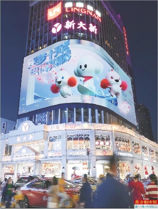 广州市北京路新大新大厦,吉祥物“喜洋洋”和“乐融融”跃然屏上。 受访者供图