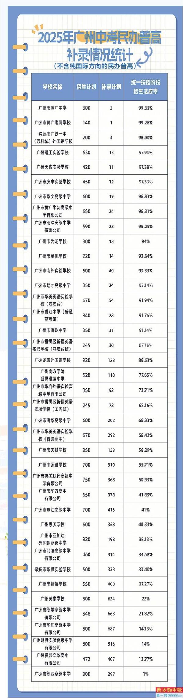 对此,坊间有一种声音认为,民办高中招生困难已成为普遍现象,整个民办高中行业都陷入了泥沼。但事实真是如此吗?其实不然,并非所有民办高中都面临招生难题,也有一些民办高中凭借优质的教学资源、良好的口碑,获得大众的青睐。在南都记者统计的39所民办高中里,仍然有16所学校的招生达成率在90%以上。