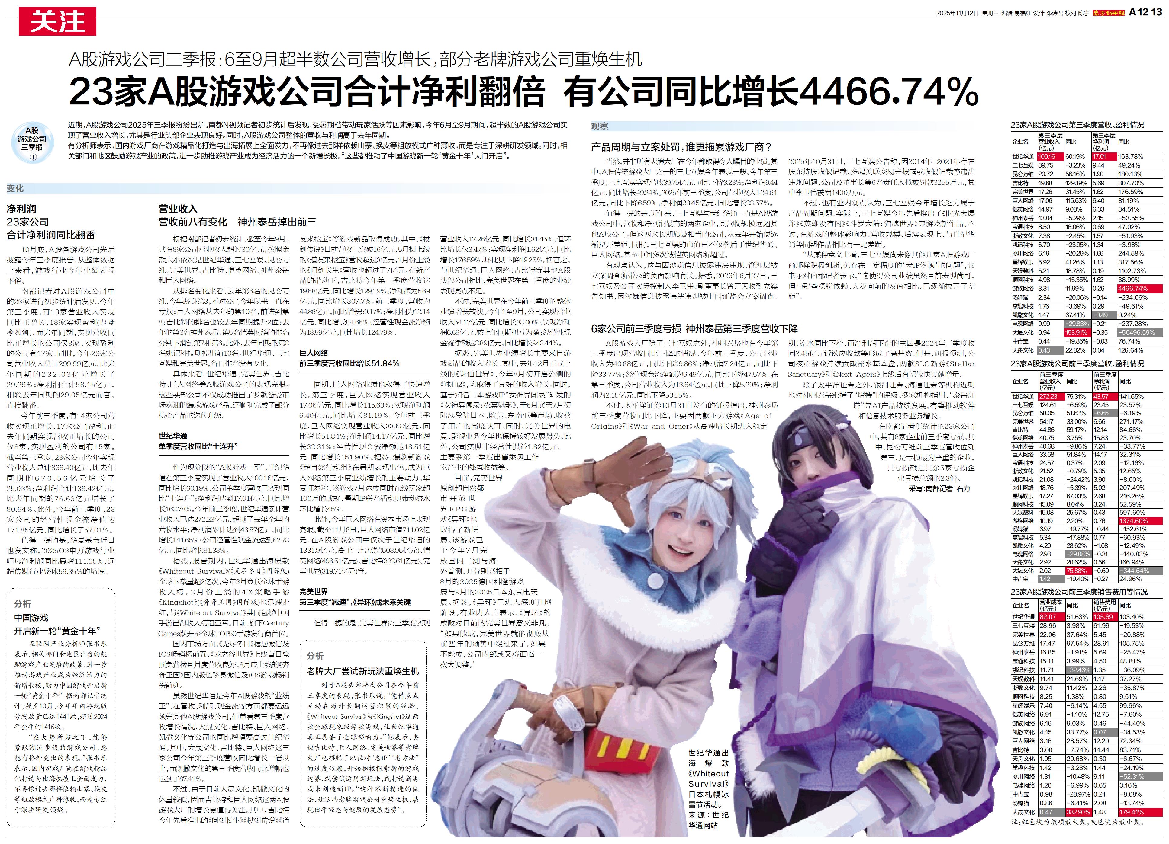 近期,A股游戏公司2025年三季报纷纷出炉。