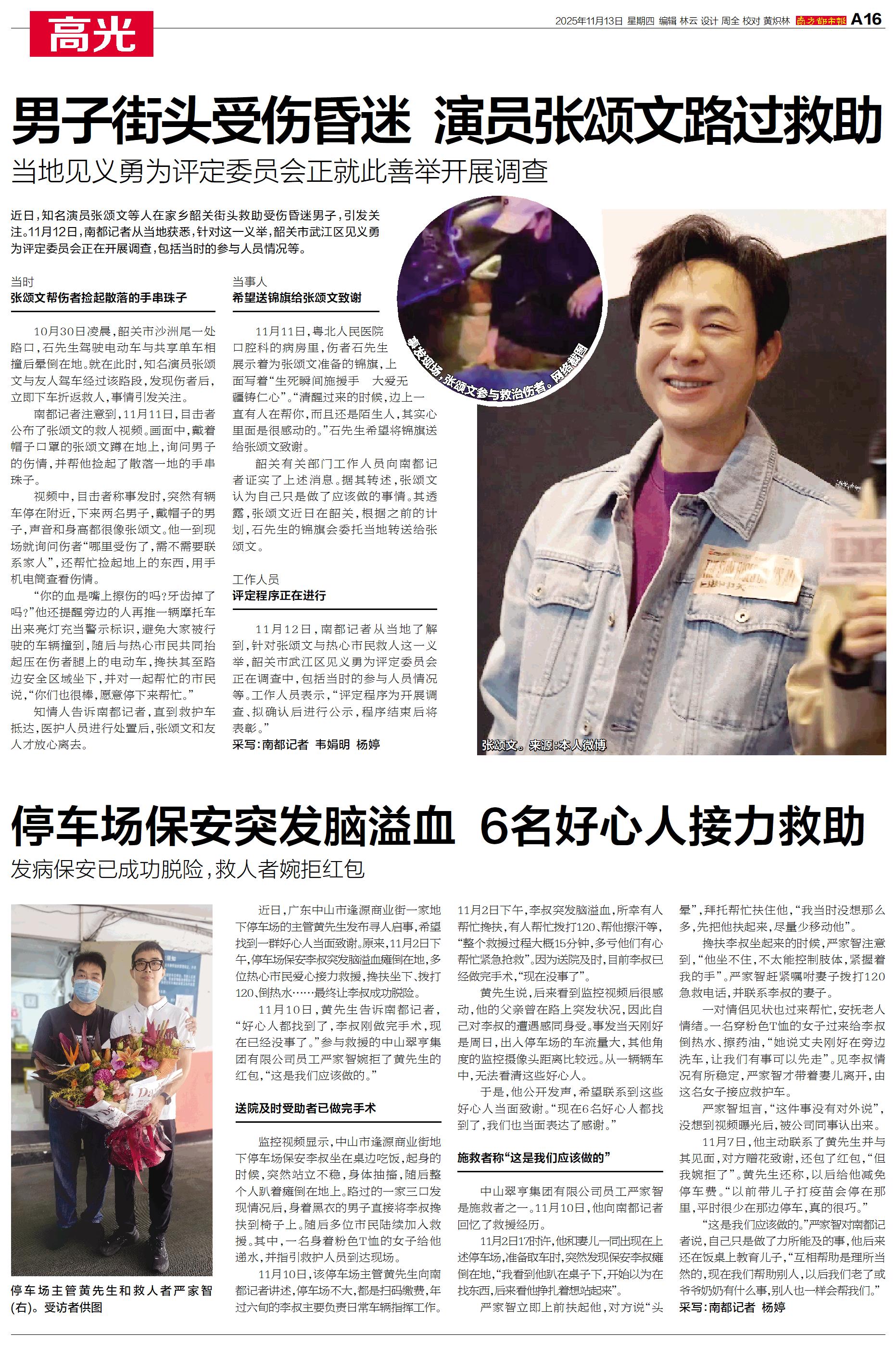 近日,知名演员张颂文等人在家乡韶关街头救助受伤昏迷男子,引发关注。