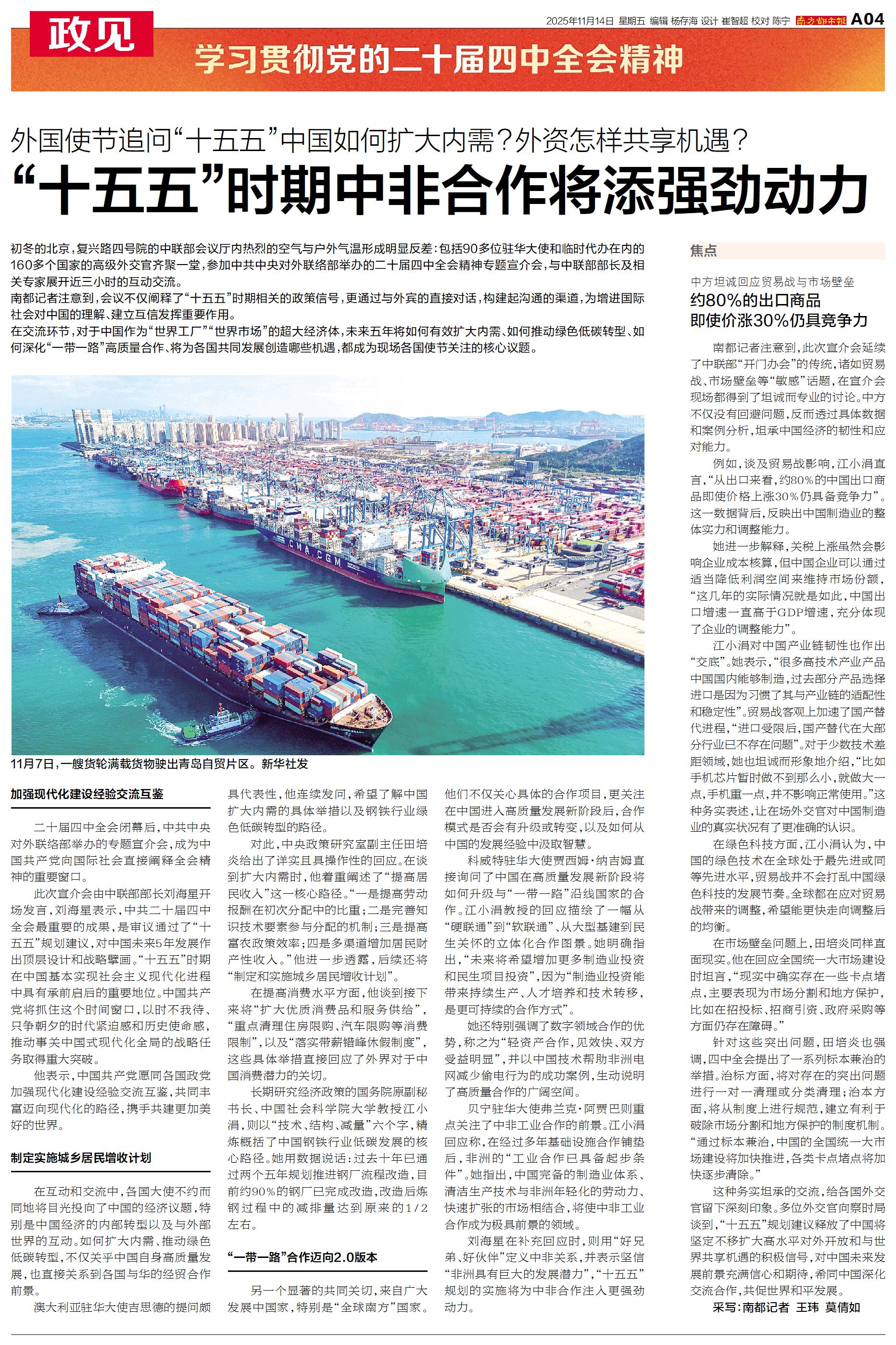 初冬的北京,包括90多位驻华大使和临时代办在内的160多个国家的高级外交官齐聚一堂,参加中共中央对外联络部举办的二十届四中全会精神专题宣介会,与中联部部长及相关专家展开近三小时的互动交流。