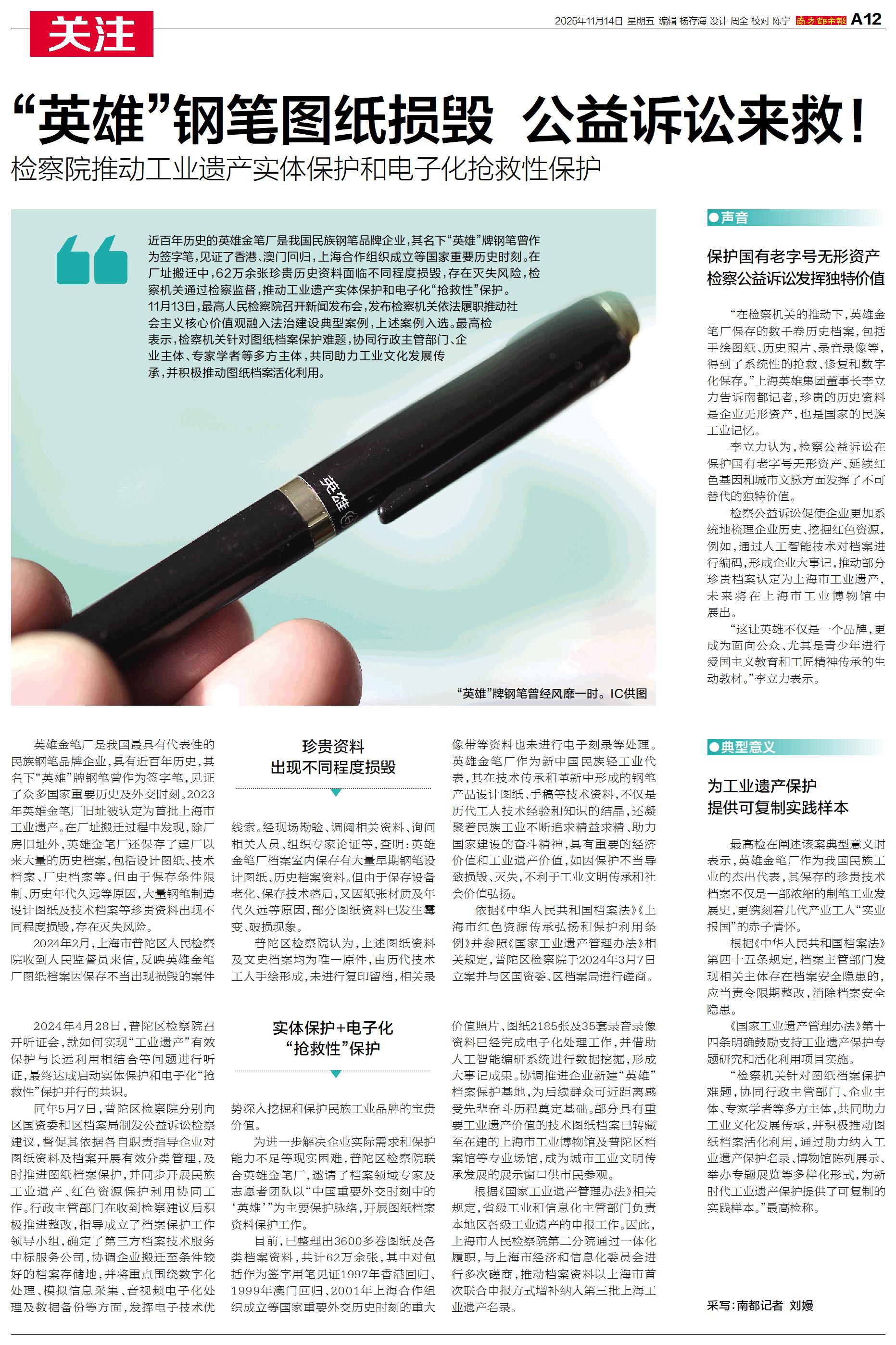 “英雄”钢笔图纸损毁 公益诉讼来救!
